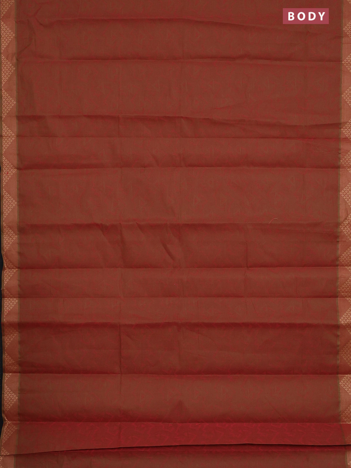 Coimbatore cotton saree dual shade of greenish maroon with allover self emboss and thread woven border