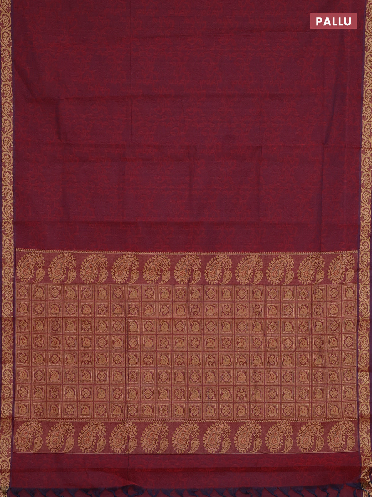 Coimbatore cotton saree dual shade of maroon and sandal with allover self emboss and thread woven border