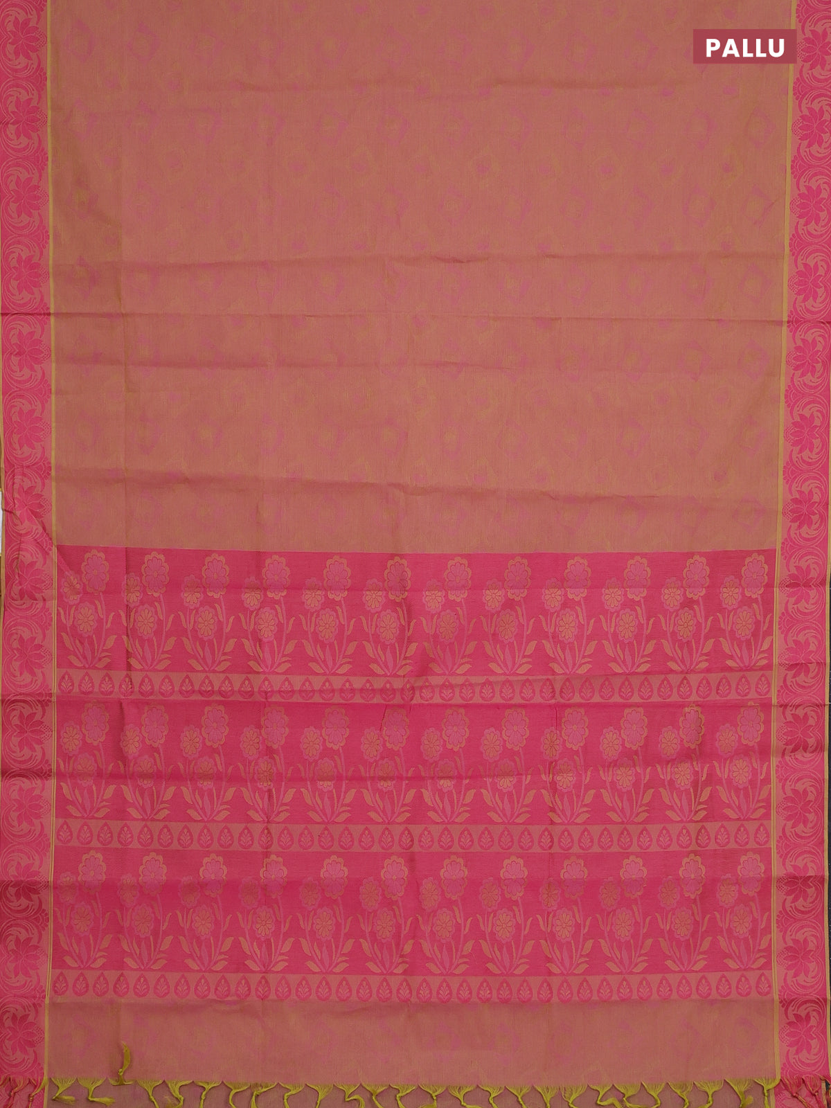 Coimbatore cotton saree dual shade of pinkish yellow and pink with allover self emboss and thread woven border