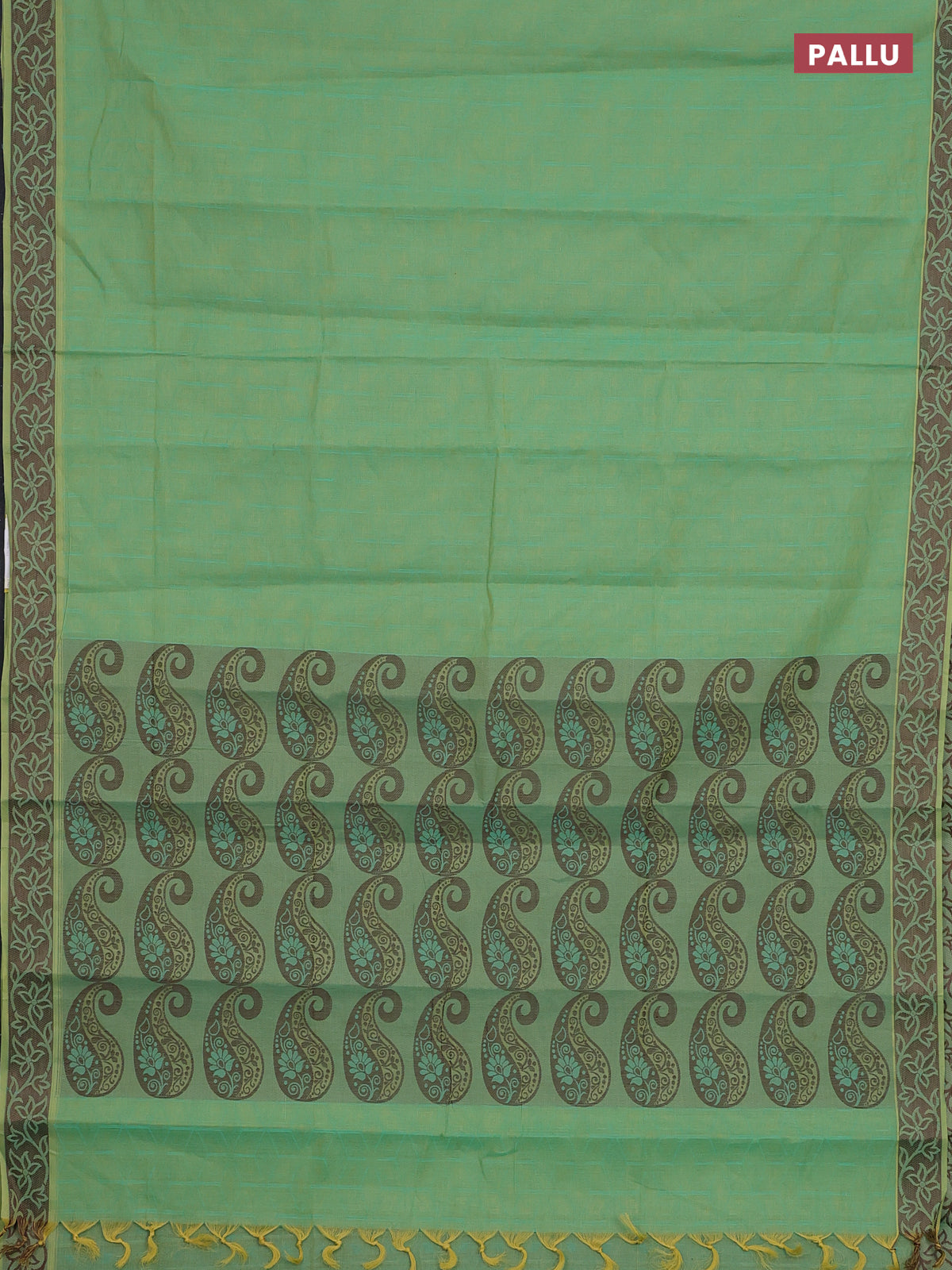 Coimbatore cotton saree dual shade of teal blue with allover self emboss and thread woven border