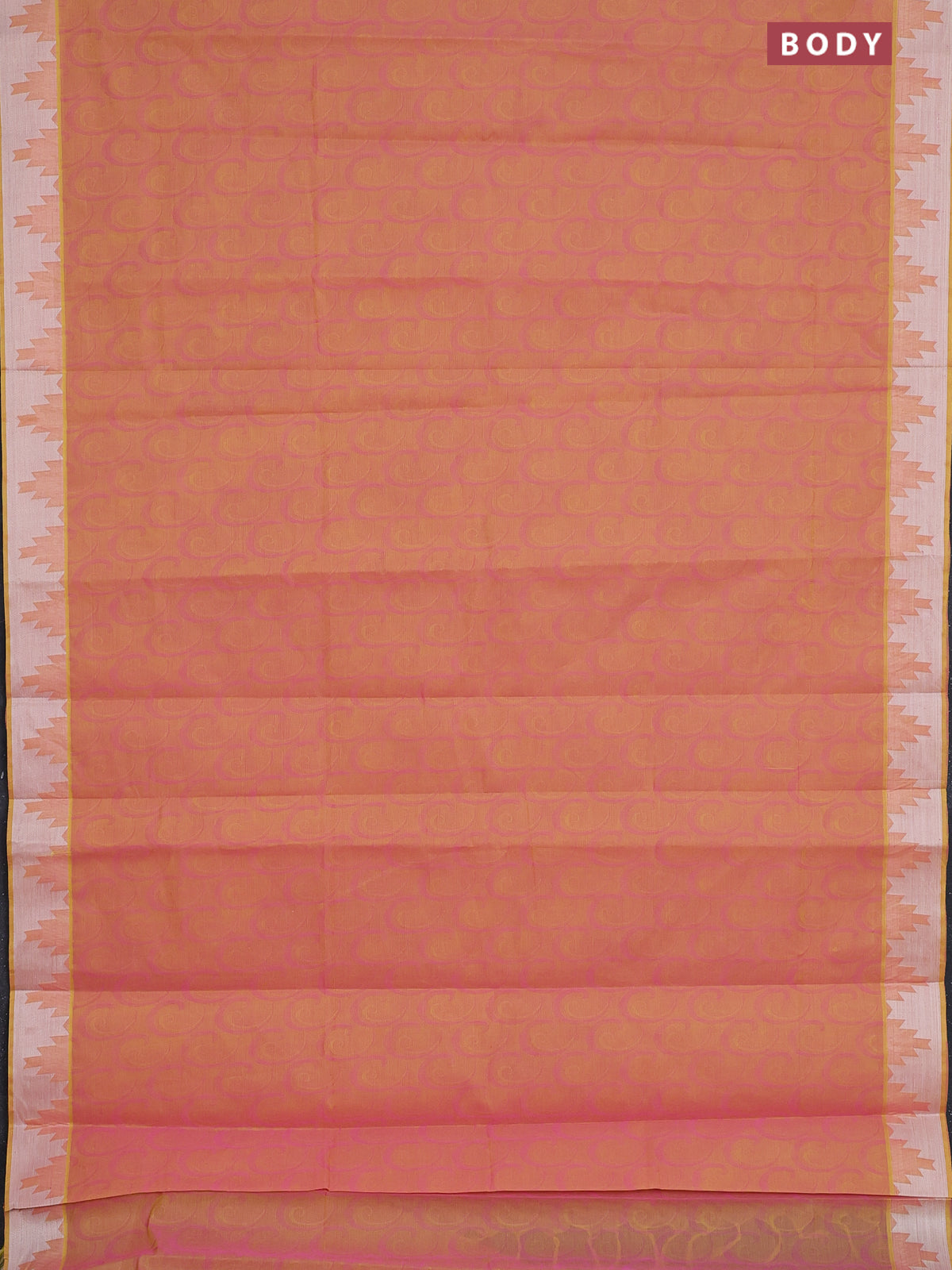 Coimbatore cotton saree dual shade of yellowish light pink with allover self emboss and thread woven border