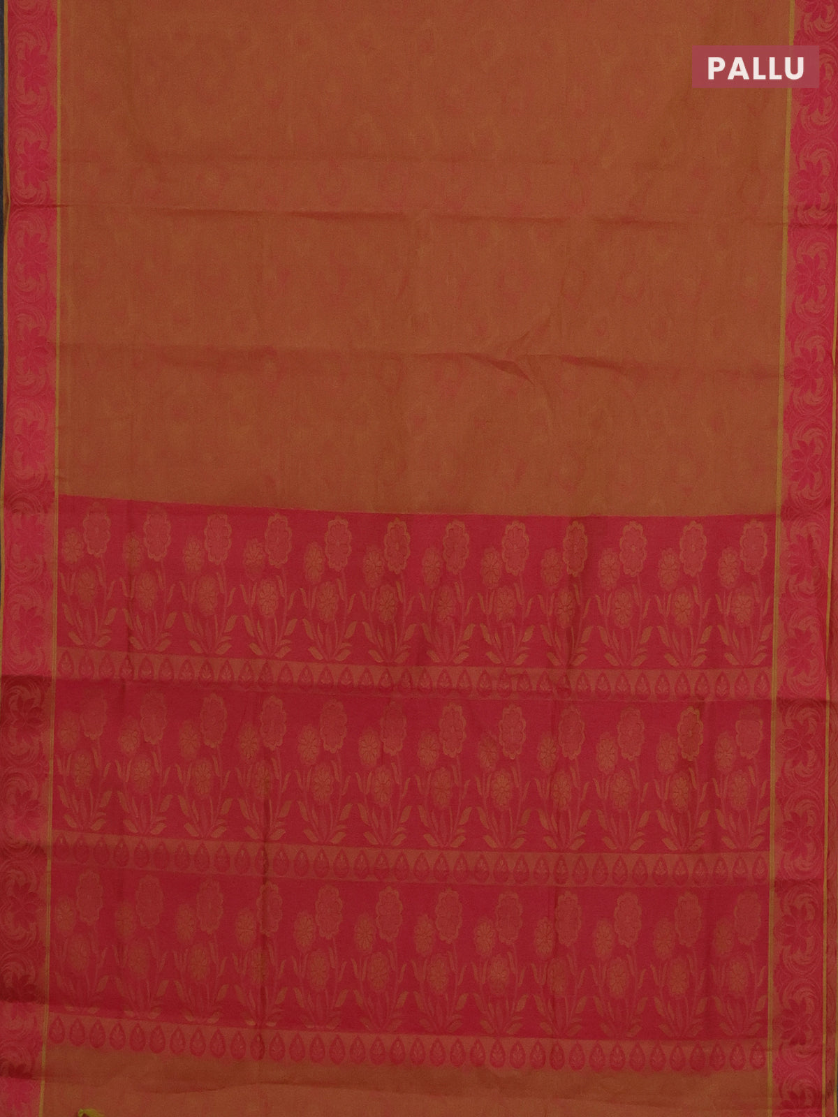 Coimbatore cotton saree dual shade of yellowish pink and pink with allover self emboss and thread woven border