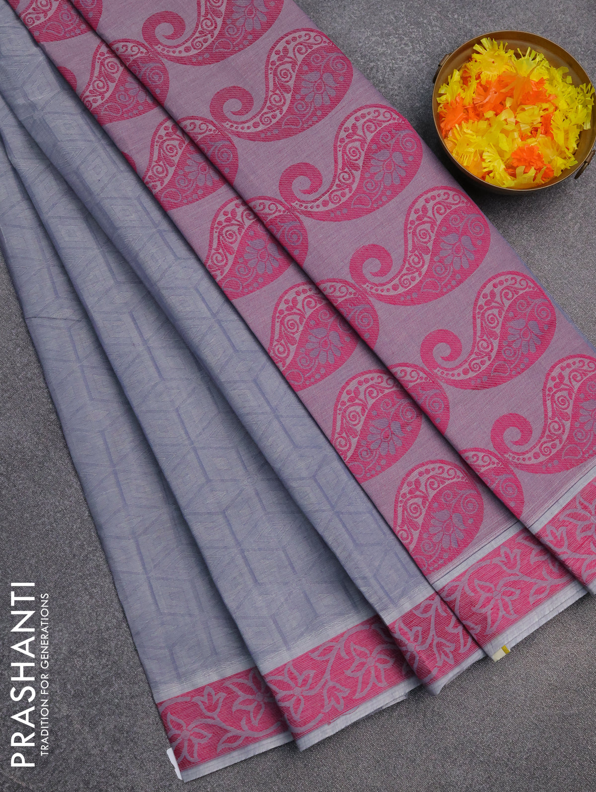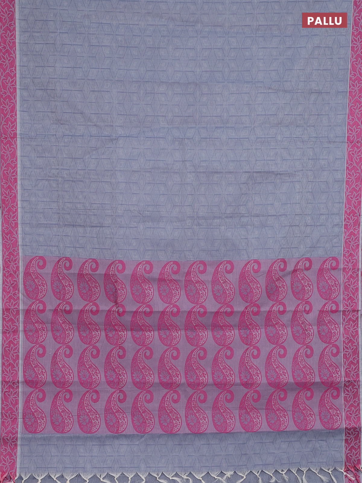 Coimbatore cotton saree grey and pink with allover self emboss and thread woven border