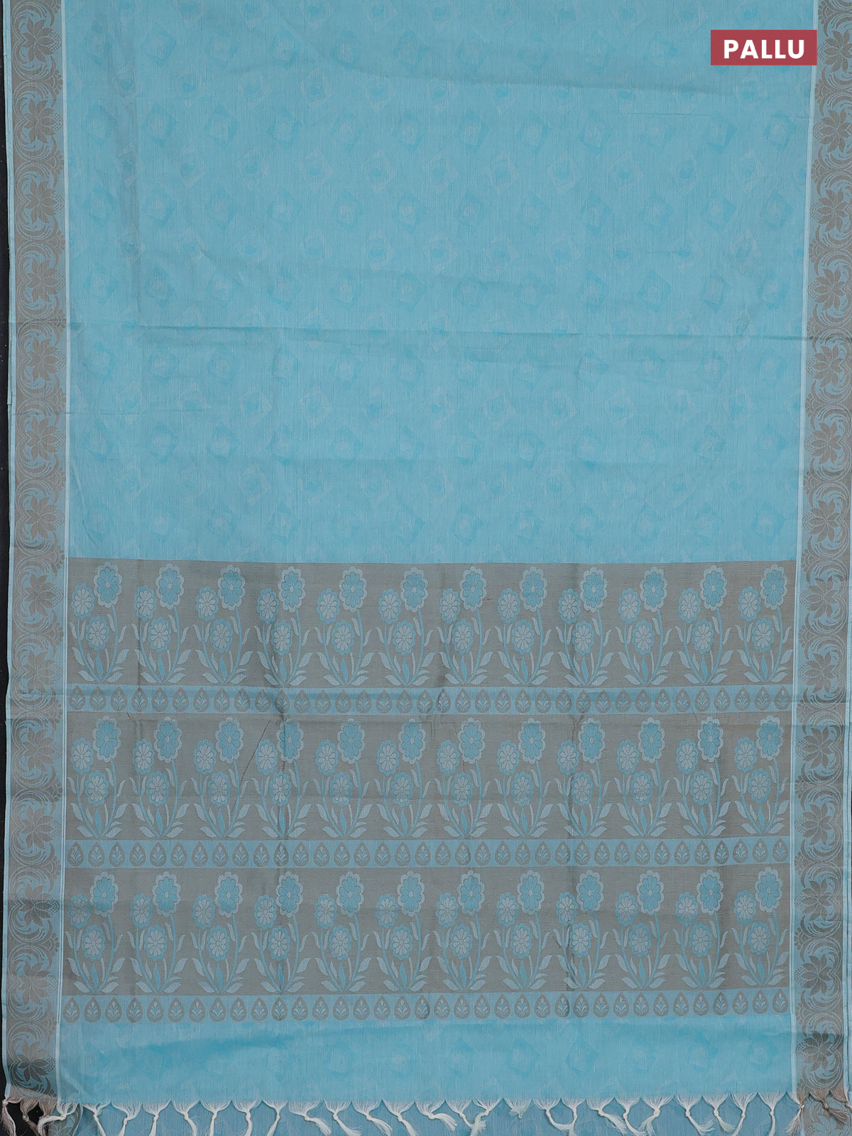 Coimbatore cotton saree light blue and beige with allover self emboss and thread woven border