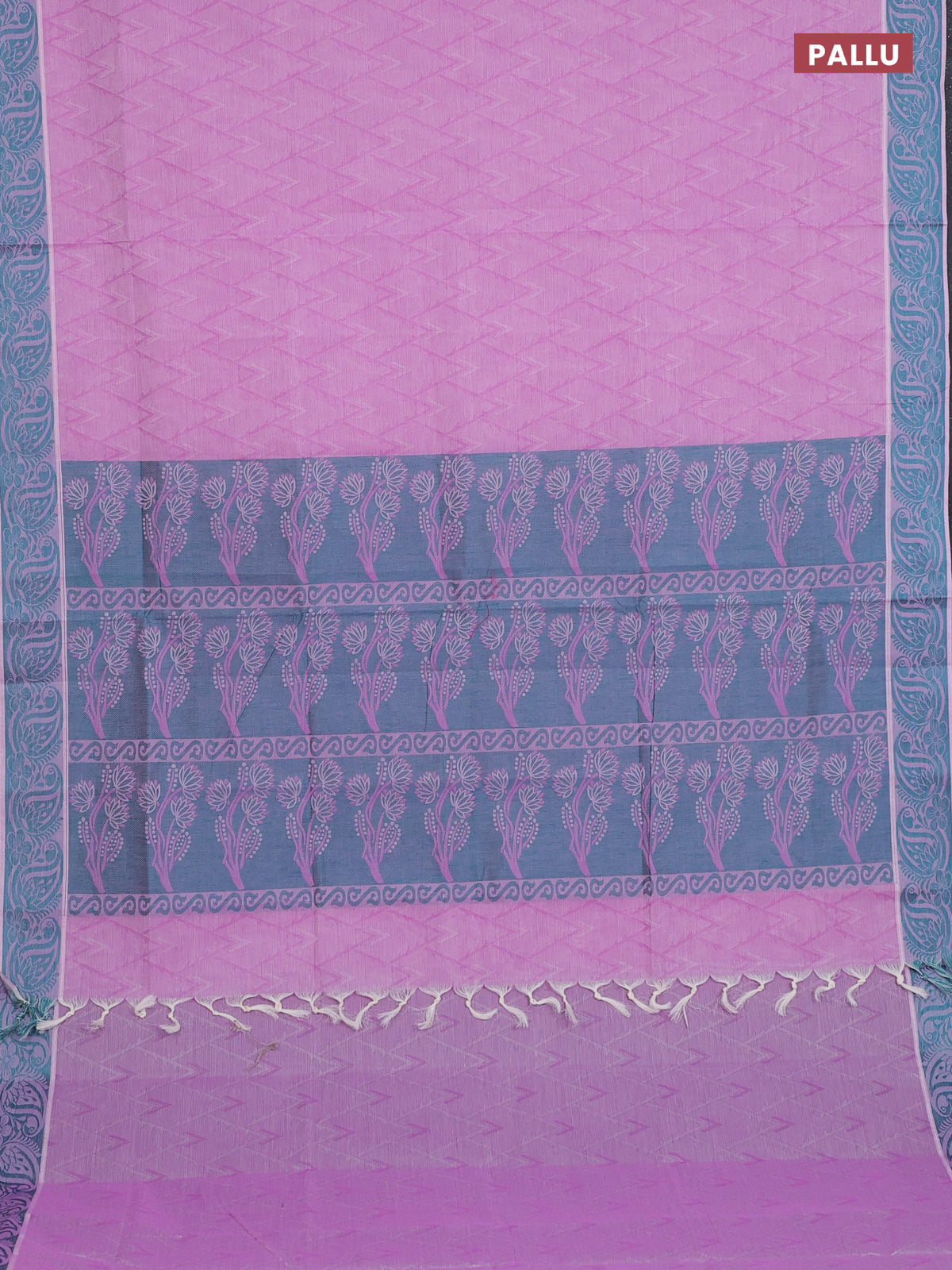 Coimbatore cotton saree lotus pink and teal green with allover self emboss and thread woven border