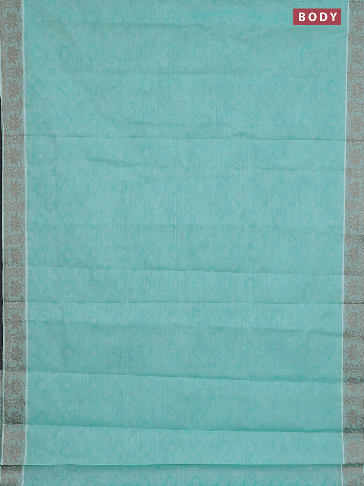 Coimbatore cotton saree mild teal green and beige with allover self emboss and thread woven border