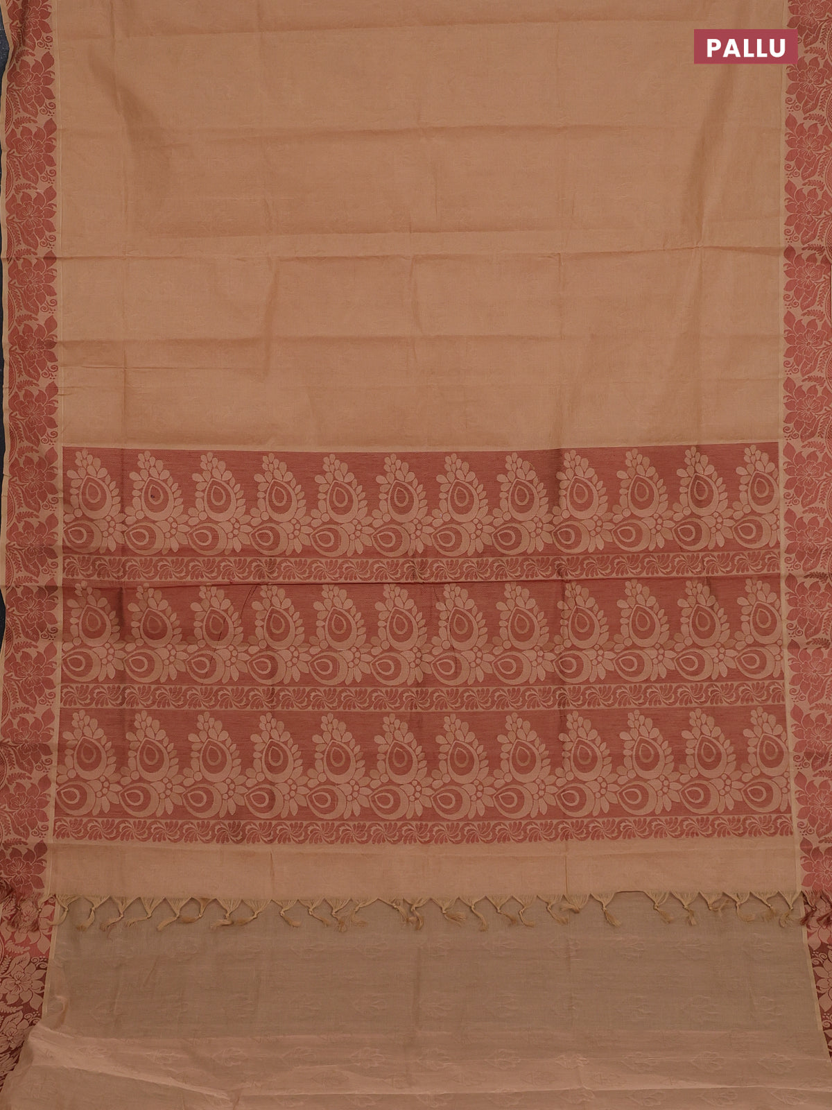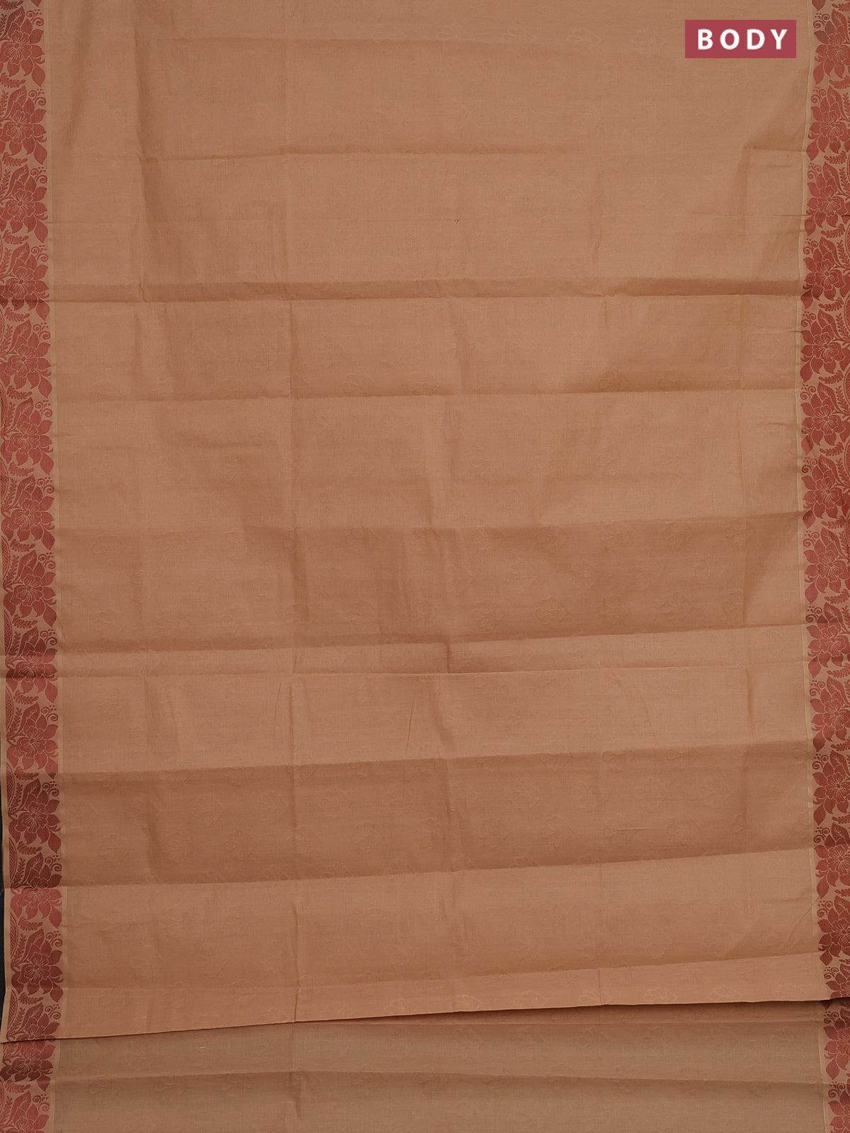 Coimbatore cotton saree sandal and brown with allover self emboss and thread woven border