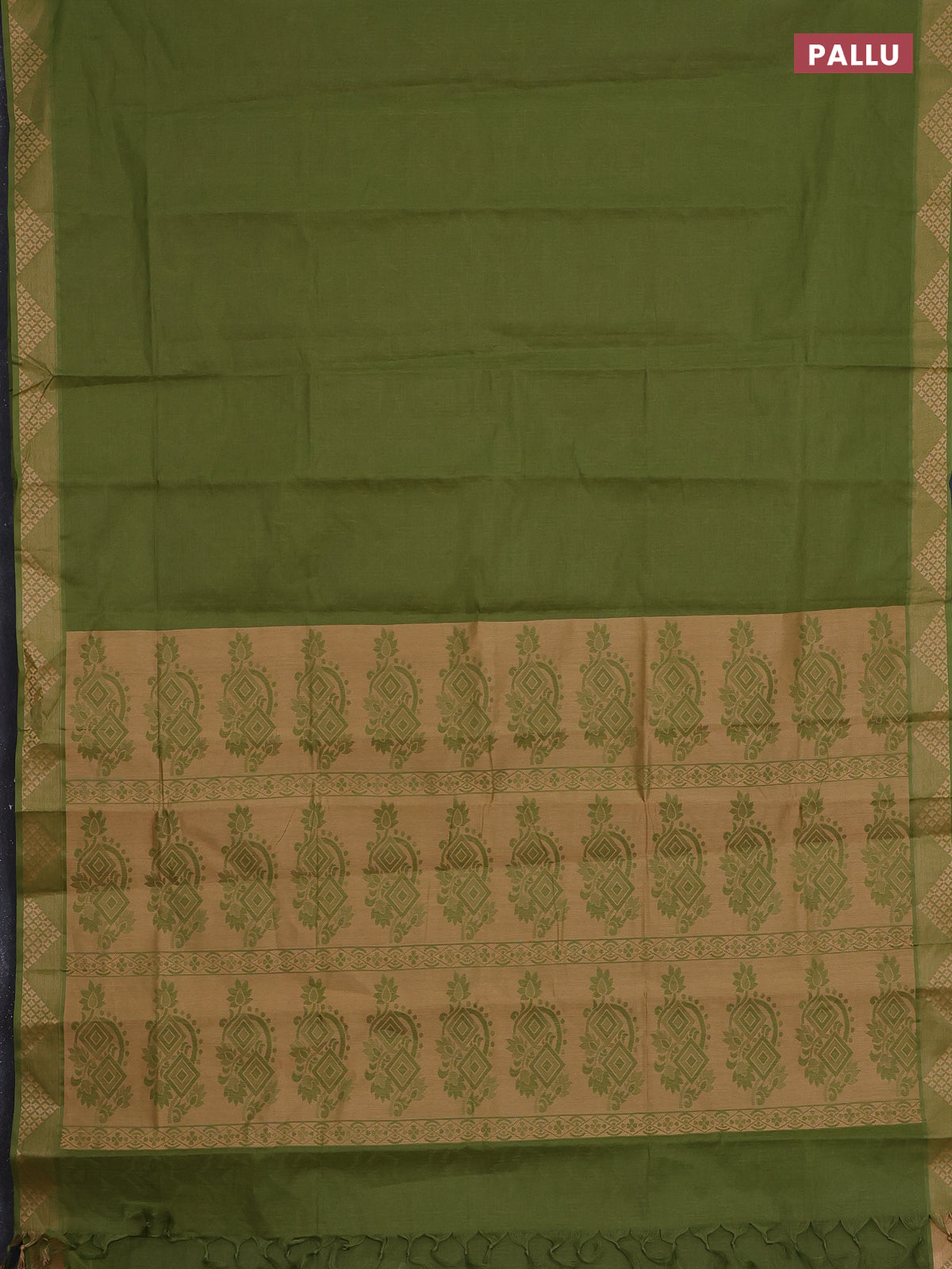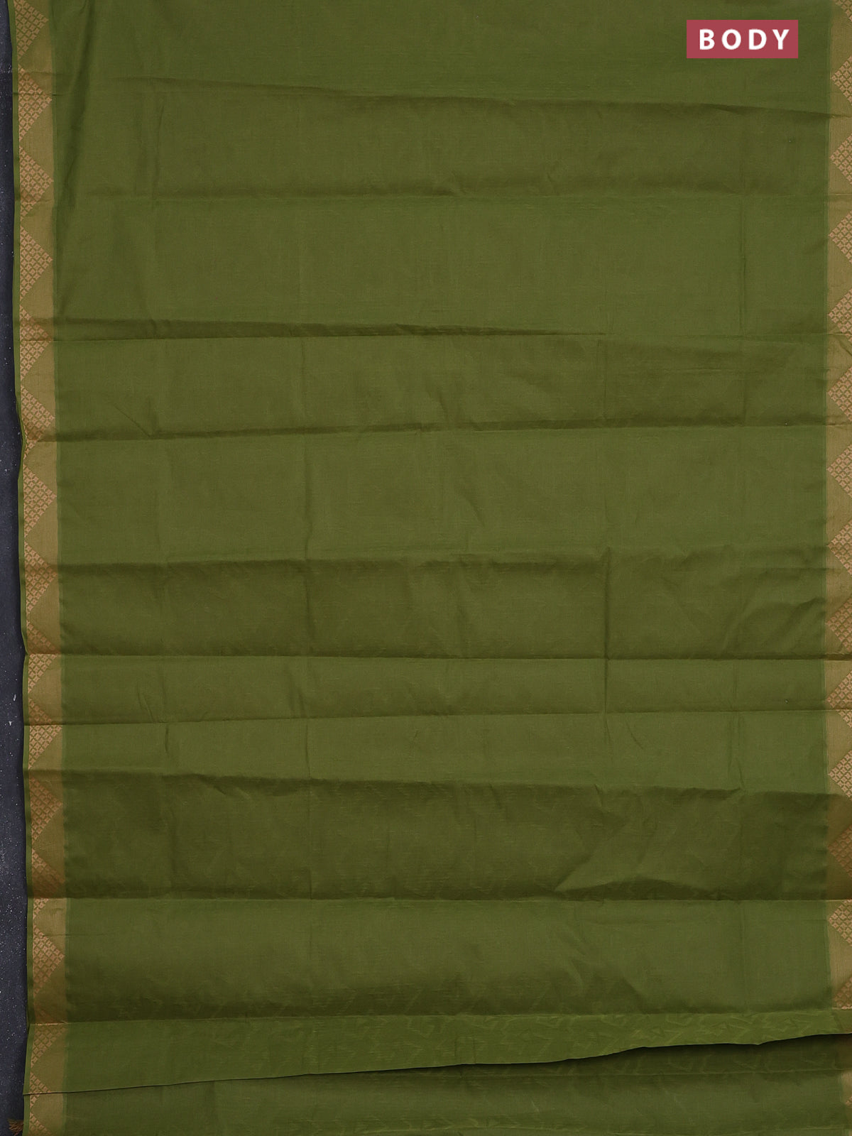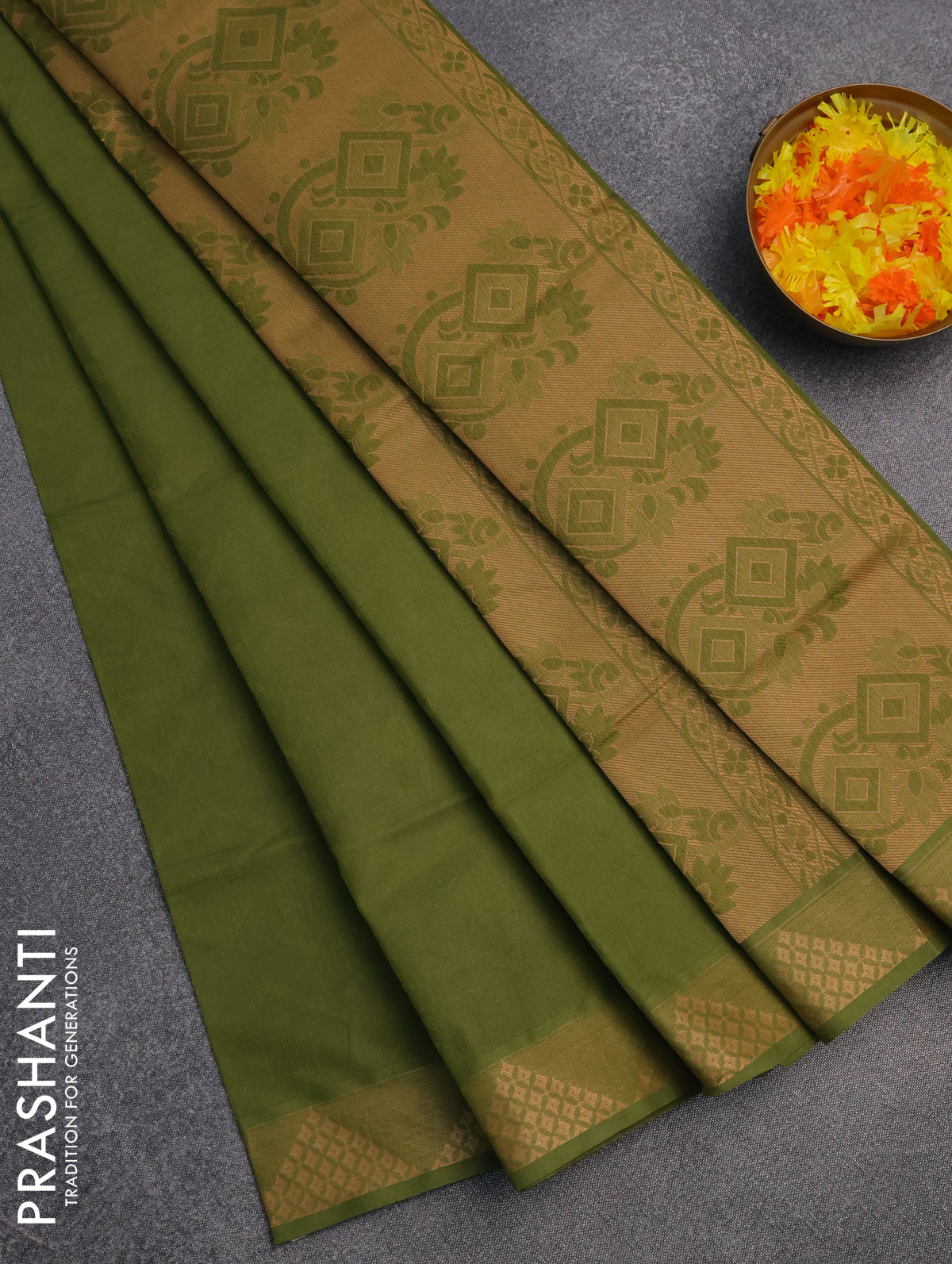 Coimbatore cotton saree sap green with allover self emboss and thread woven border