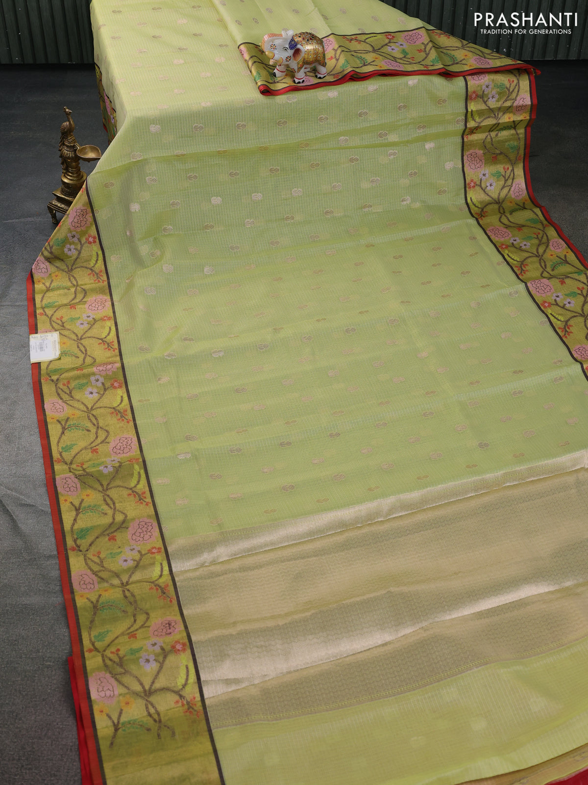 Cotton zari kota saree pista green with zari woven buttas and zari woven paithani style border