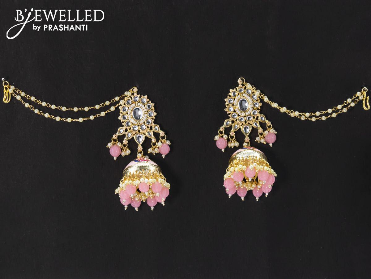 Dangler baby pink jhumkas with hangings and pearl maatal