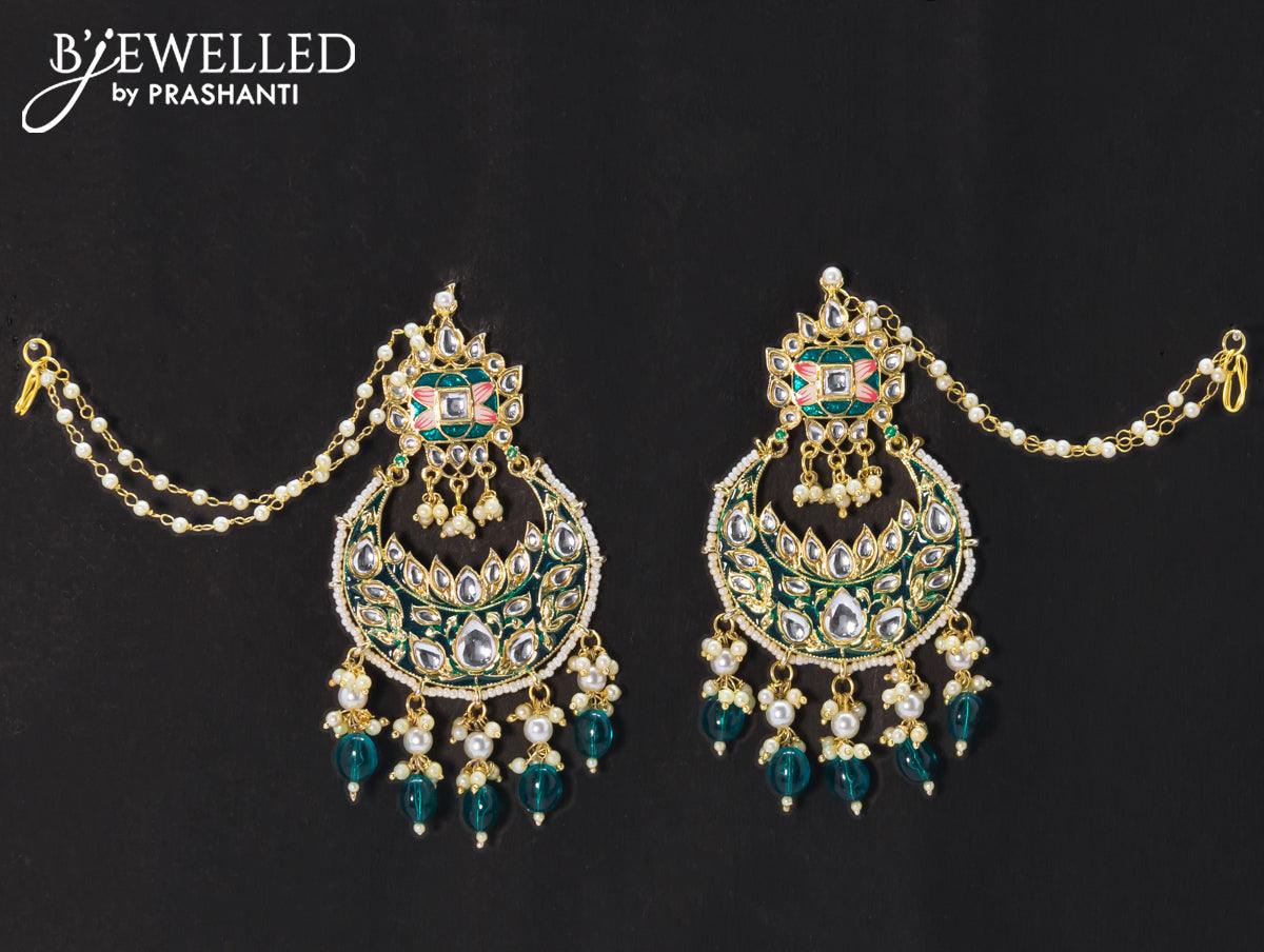 Dangler chandbali earrings teal blue with hangings and pearl maatal
