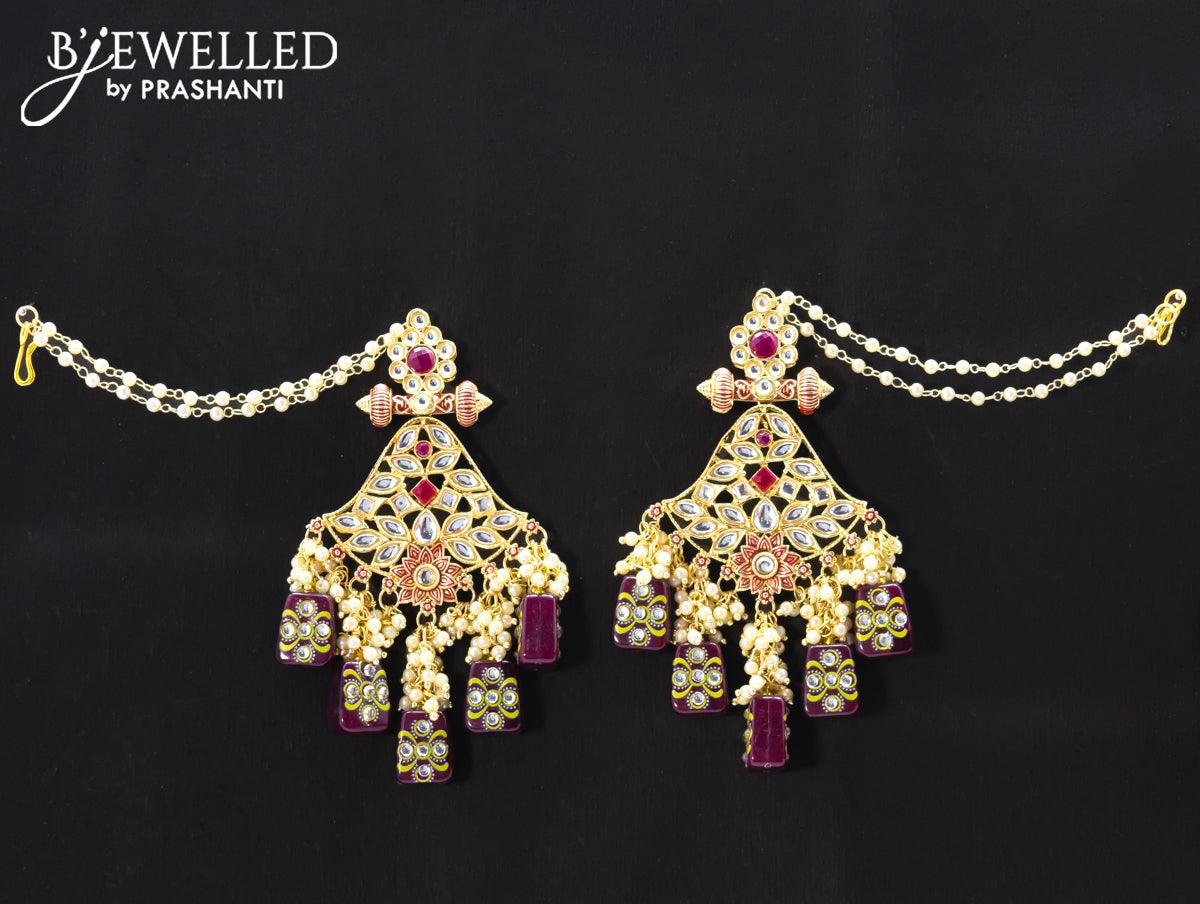 Dangler earrings maroon with pearl hangings and pearl maatal
