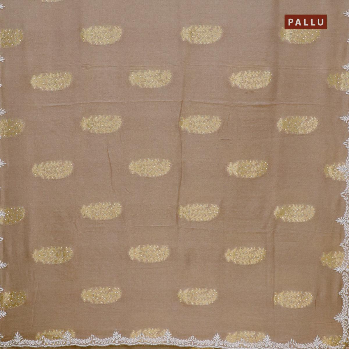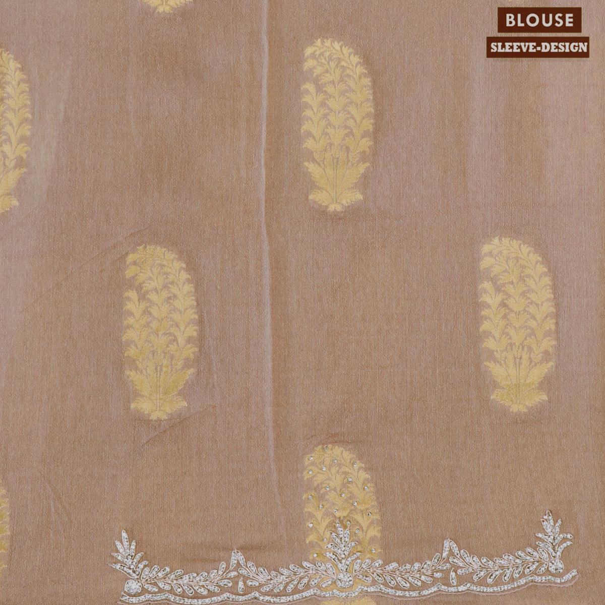 Designer georgette saree brown shade with allover zari buttas & stone work
