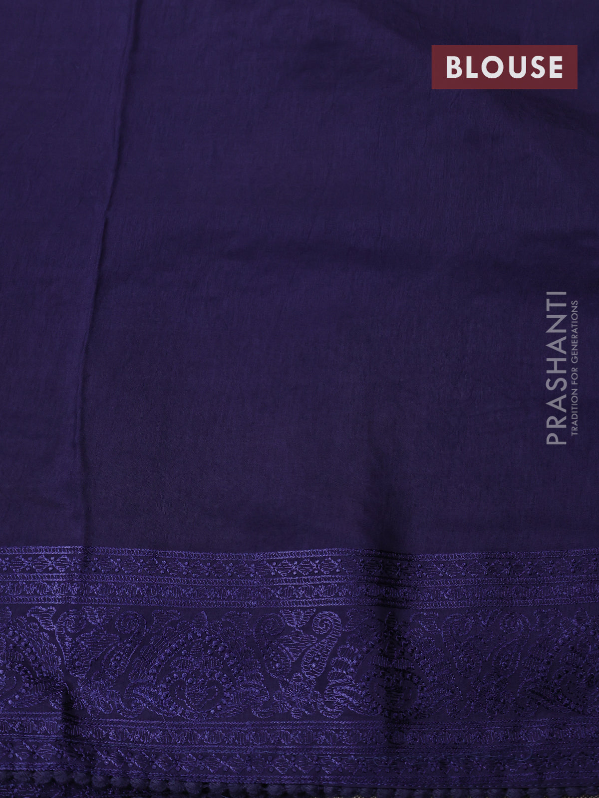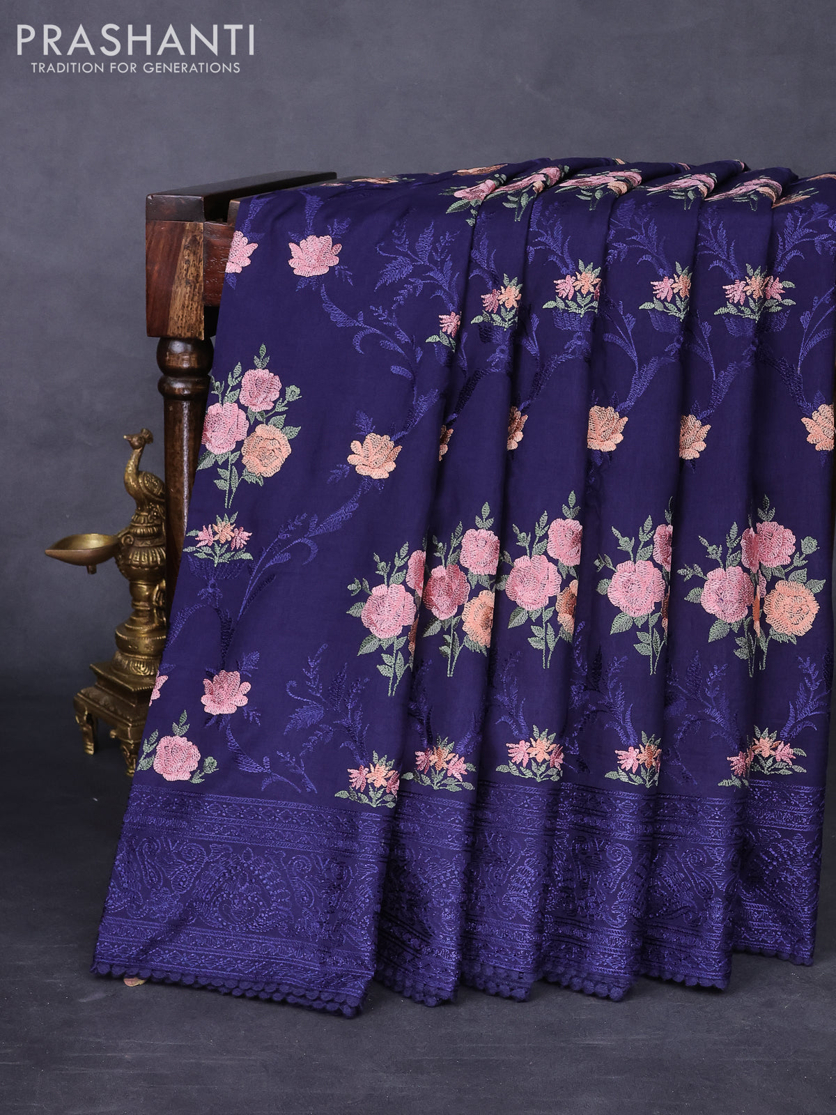 Dola silk saree dark blue with allover floral embroidery work and chikankari work border