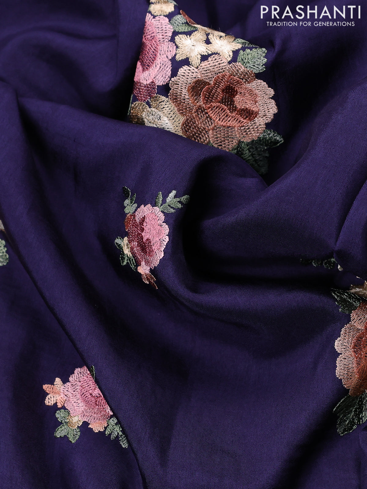 Dola silk saree dark blue with allover floral embroidery work and chikankari work border