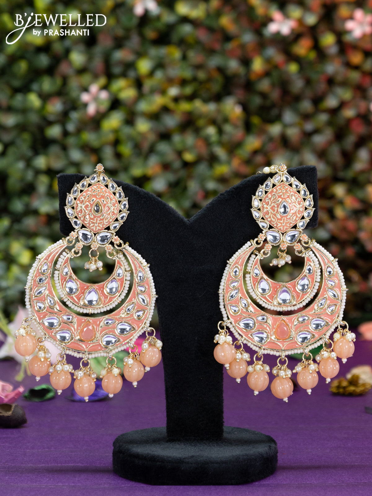 Fashion dangler chanbali peach minakari earrings with beads and pearl hangings