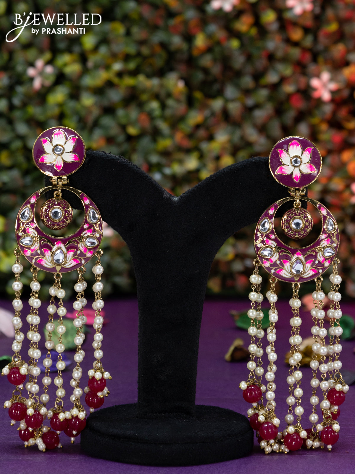 Fashion dangler chanbali pink minakari earrings with pearl hangings