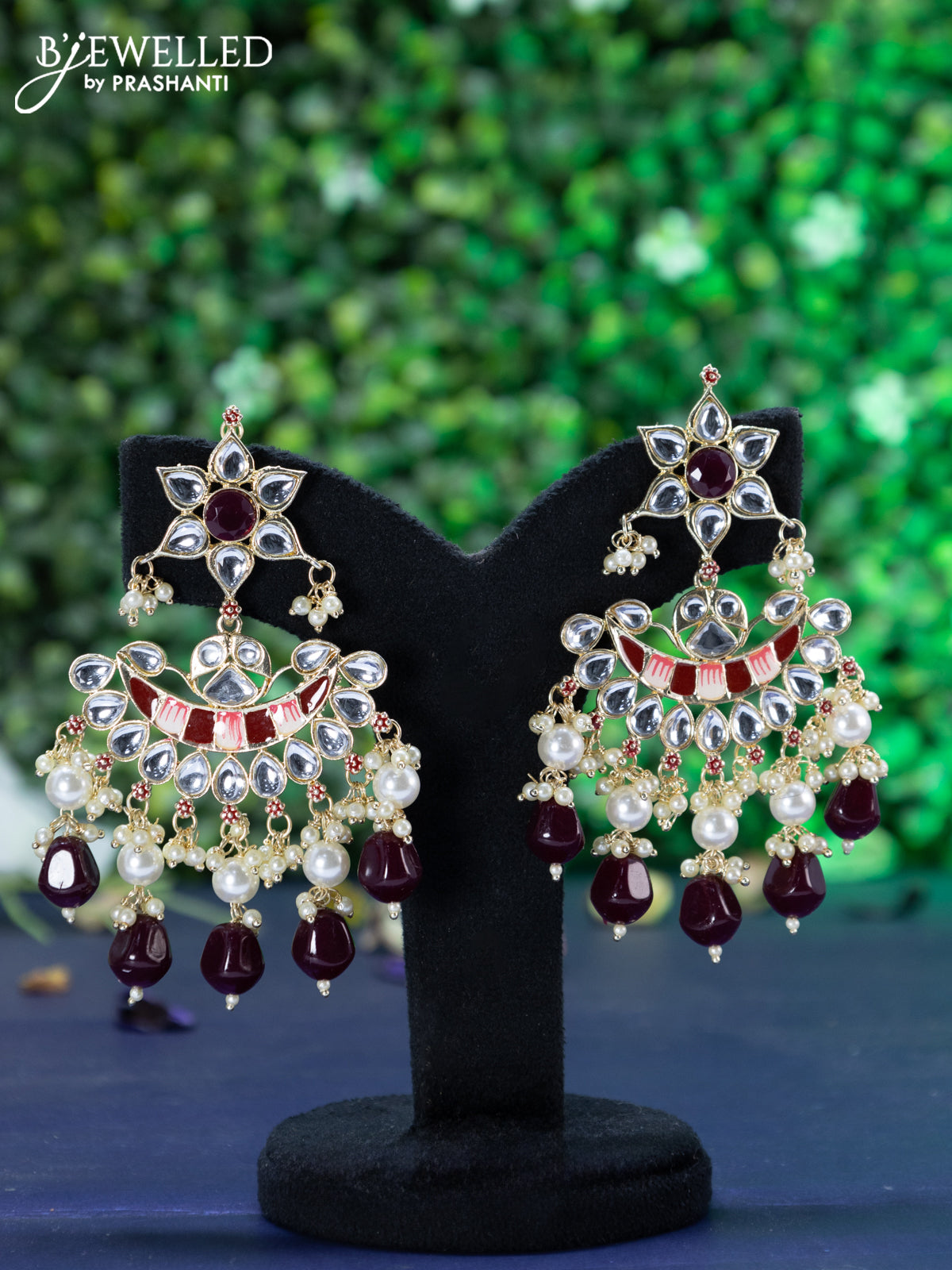 Fashion dangler chandbali maroon minakari earrings with kundan stones and beads hanging