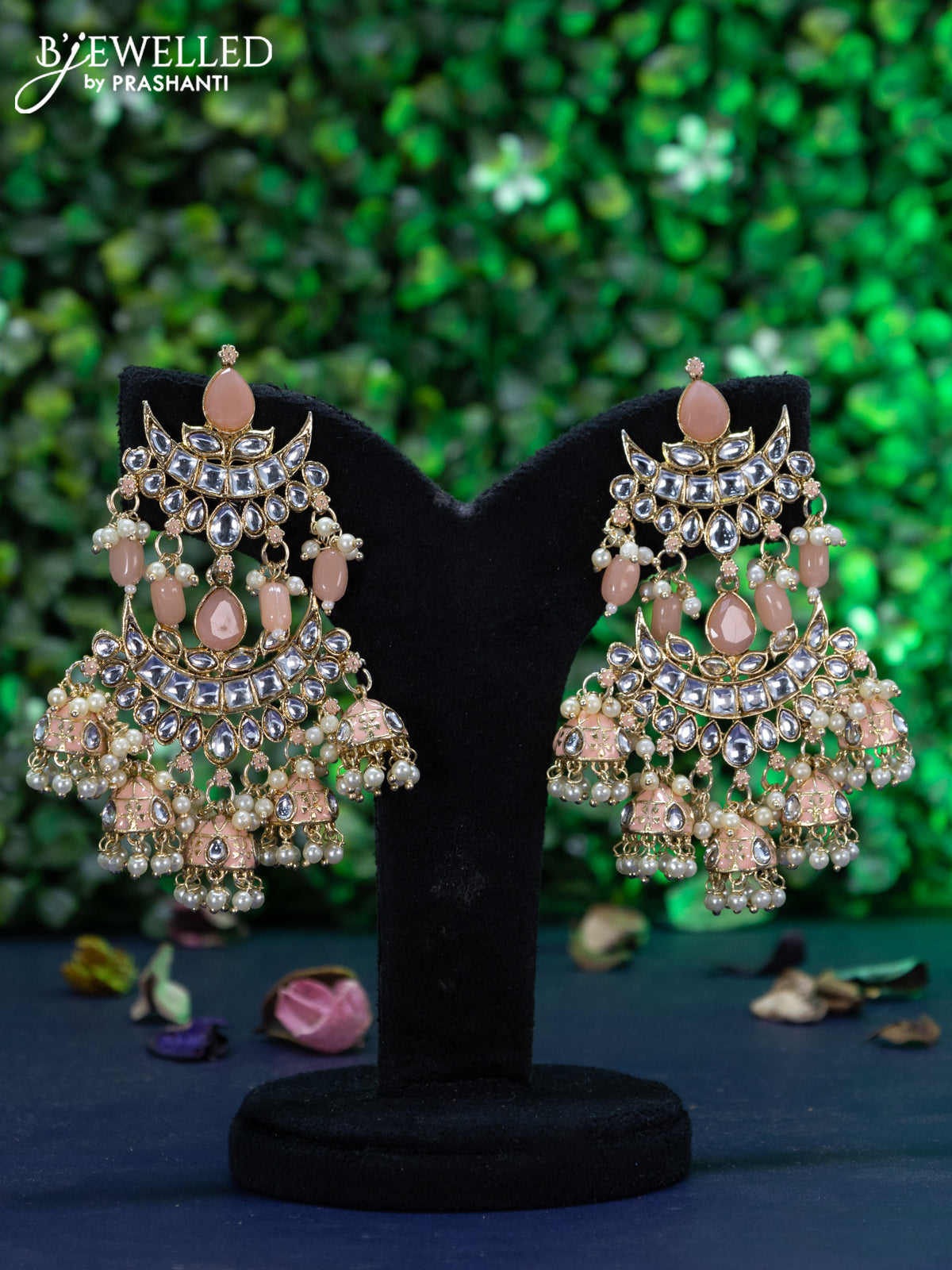 Fashion dangler chandbali peach minakari earrings with kundan stones and pearl hangings