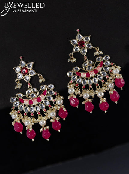 Fashion dangler chandbali pink minakari earrings with beads hangings