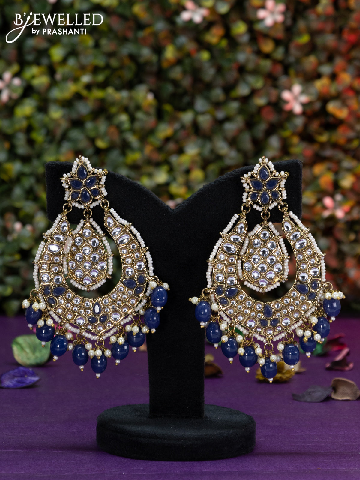 Fashion dangler dark blue minakari earrings with kundan stones beads hangings