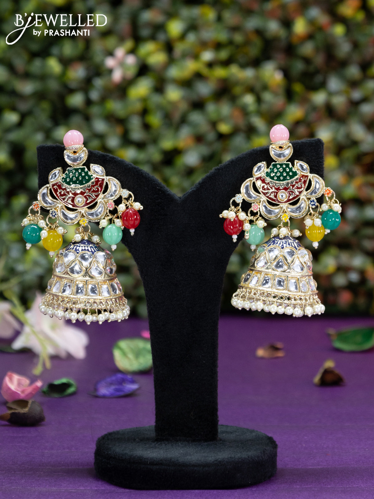Fashion dangler multi colour minakari jhumka with kundan stones and pearl hangings