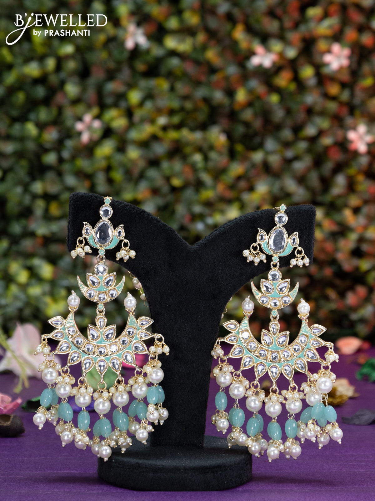 Fashion dangler teal blue minakari earrings with kundan stones beads hangings