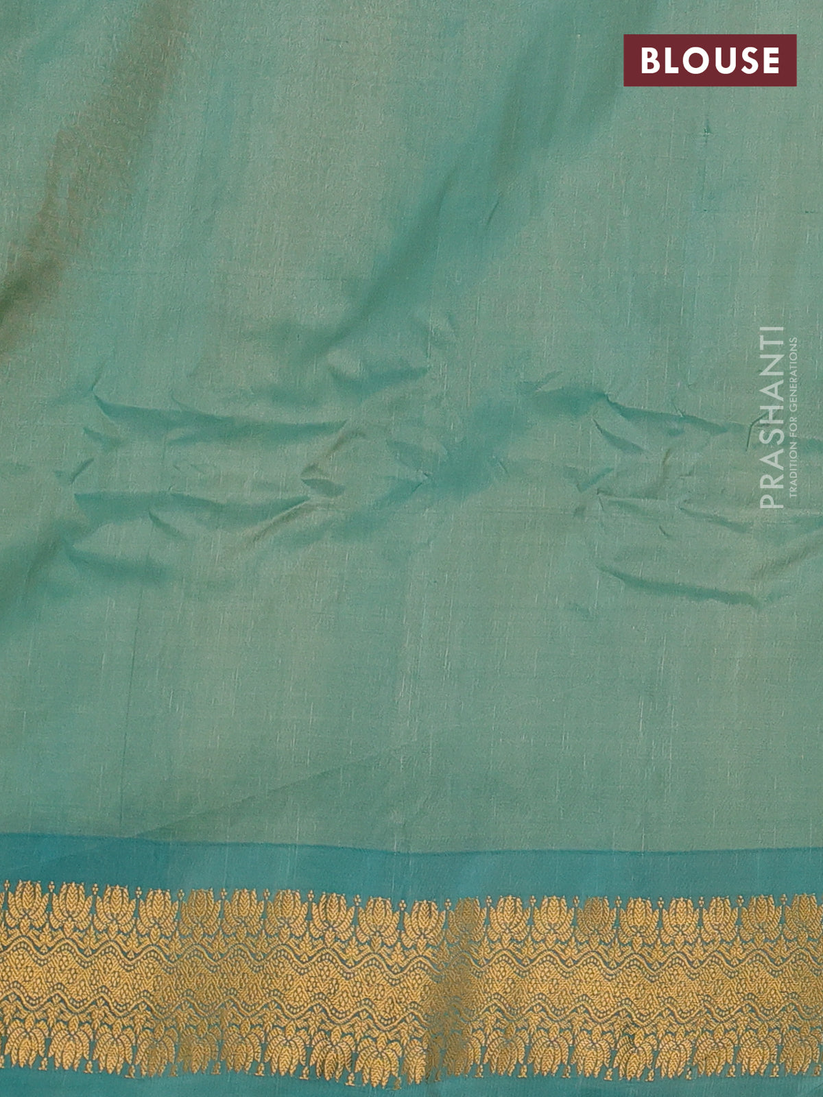 Gadwal silk cotton saree cream and teal blue with zari woven buttas and zari woven border