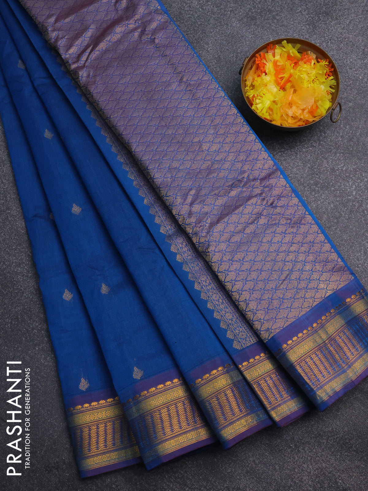 Gadwal silk cotton saree cs blue and dual shade of maroon with zari woven buttas and zari woven border