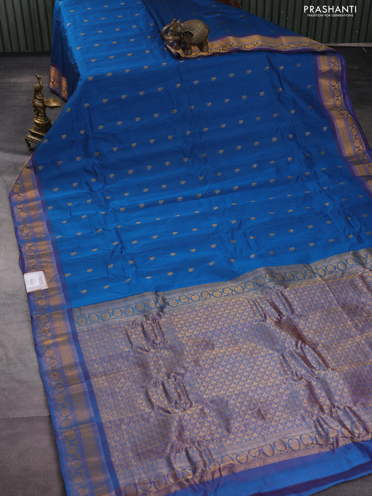 Gadwal silk cotton saree cs blue with allover zari woven paisley buttas and zari woven border