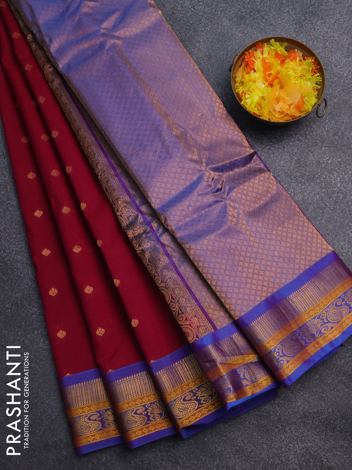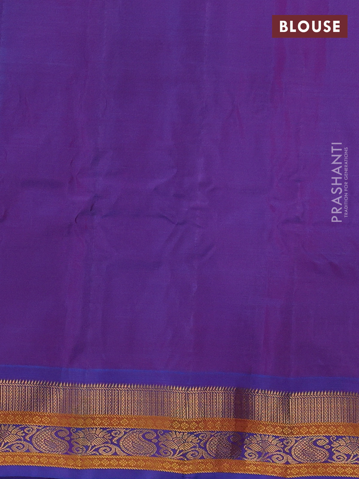 Gadwal silk cotton saree dark magenta pink and dual shade of blue with zari woven buttas and zari woven border