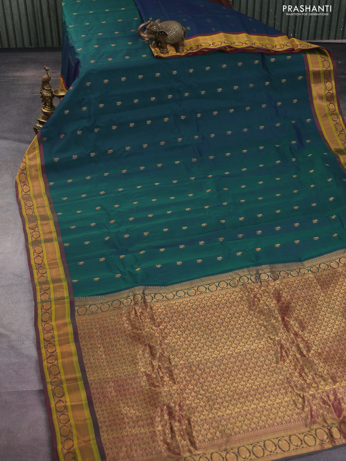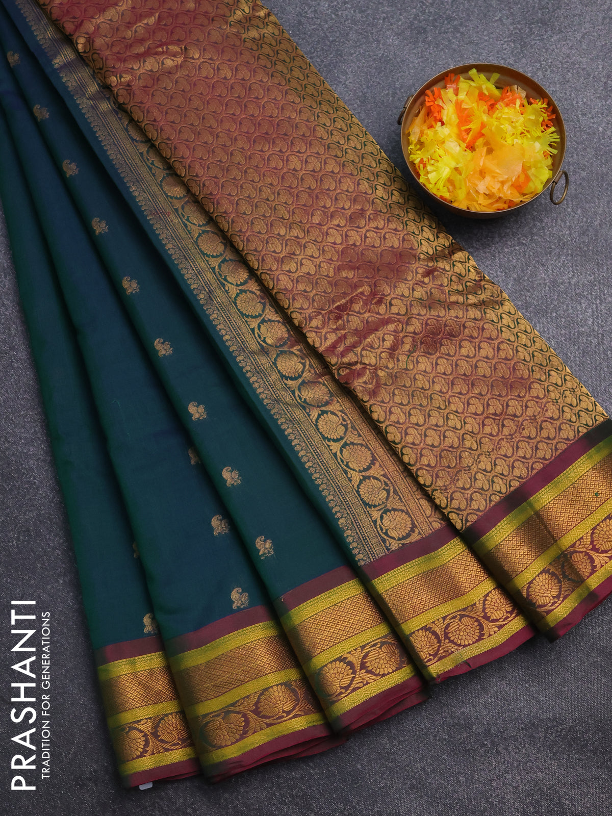 Gadwal silk cotton saree dual shade of green and pink with allover zari woven paisley buttas and zari woven border