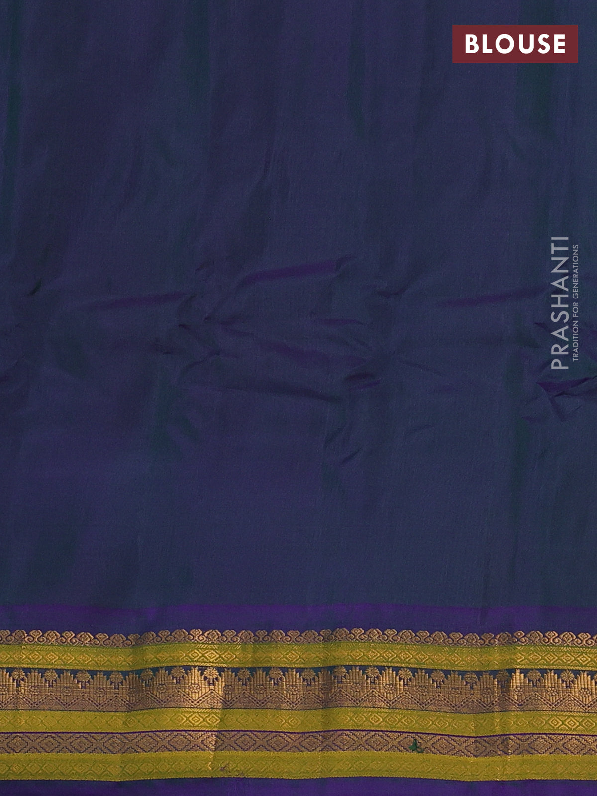 Gadwal silk cotton saree dual shade of greenish blue and dual shade of violet with zari woven paisley buttas and zari woven border