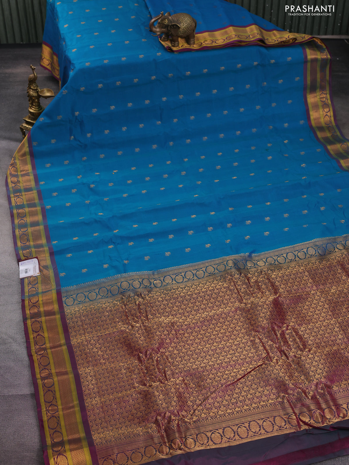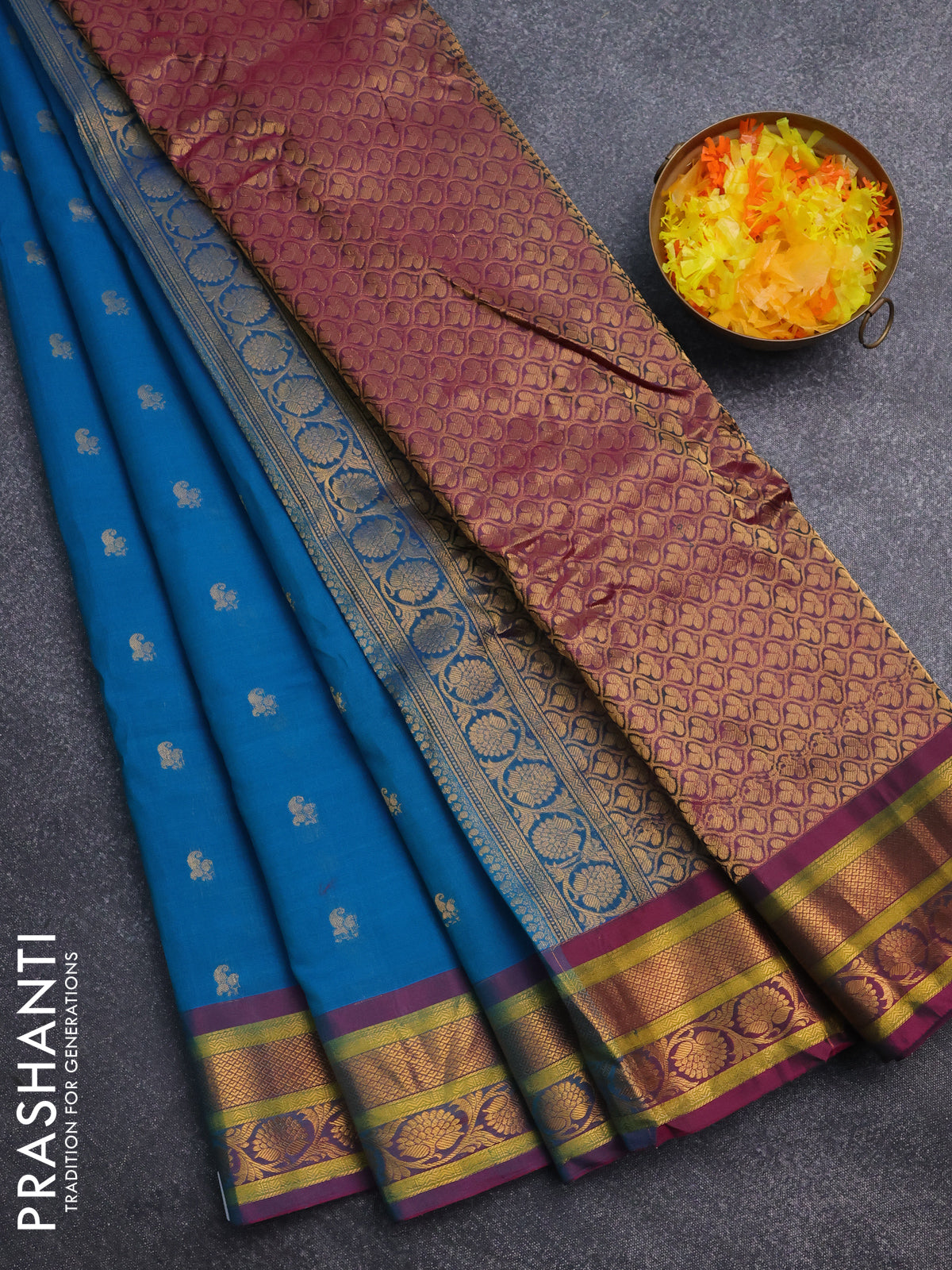 Gadwal silk cotton saree dual shade of teal blue and dual shade of pink with allover zari woven paisley buttas and zari woven border