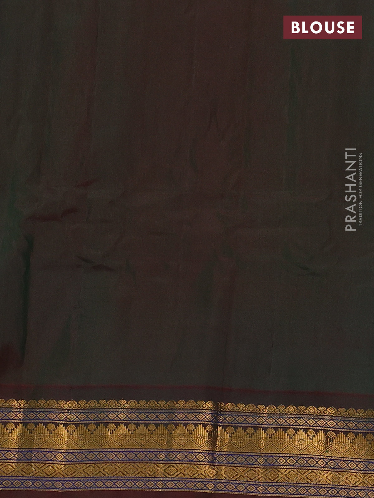 Gadwal silk cotton saree dual shade of teal bluish green and dual shade of maroon with zari woven paisley buttas and zari woven border
