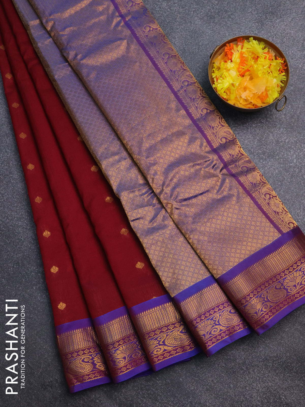 Gadwal silk cotton saree maroon and dual shade of blue with zari woven buttas and zari woven border