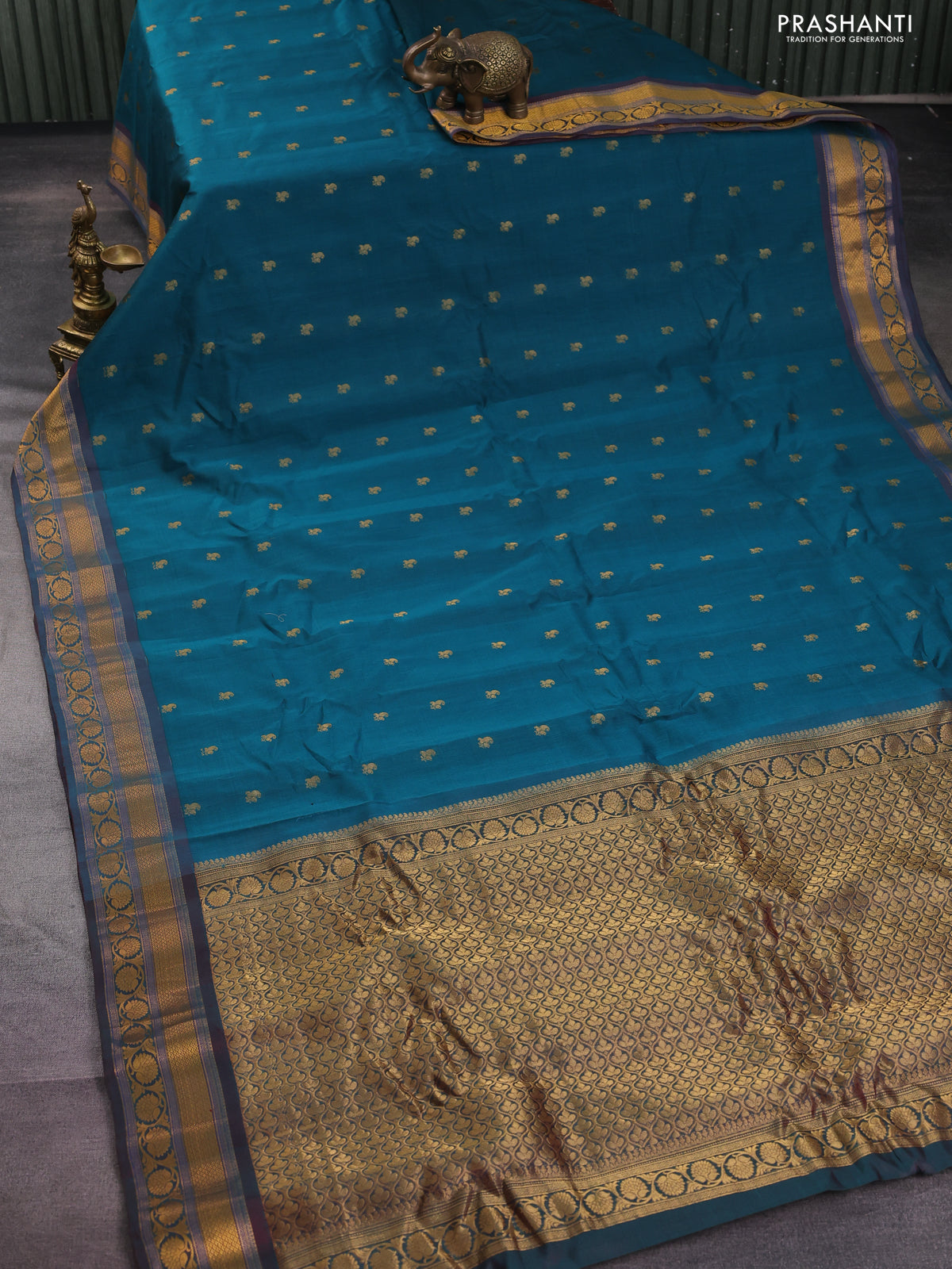 Gadwal silk cotton saree peacock green and dual shade of maroon with allover zari woven paisley buttas and zari woven border