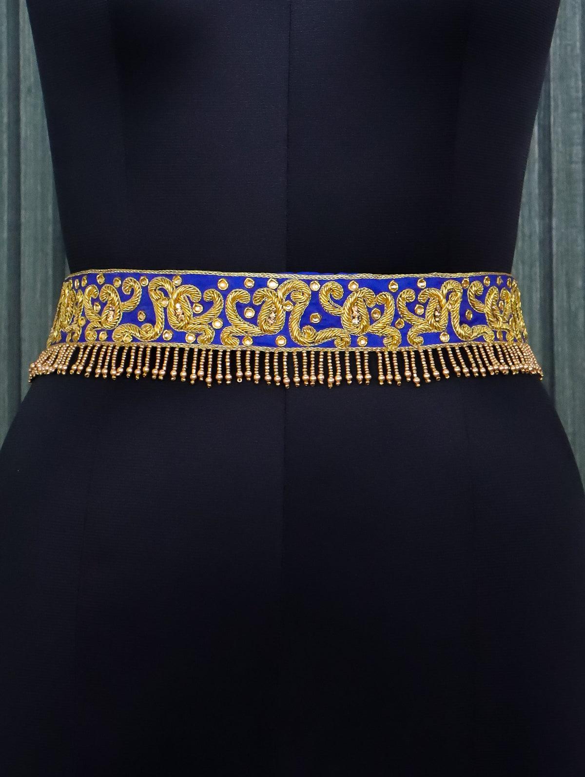Hip belt blue with zardosi work & beaded hanging