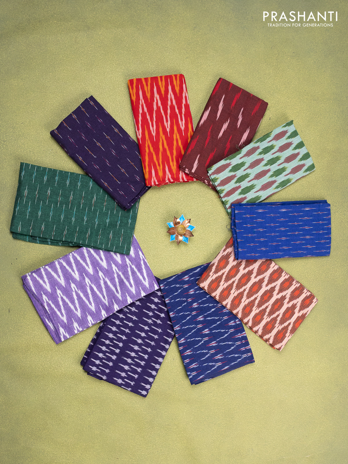 Ikat cotton blouse bits multi colour and multi design Pack of 10