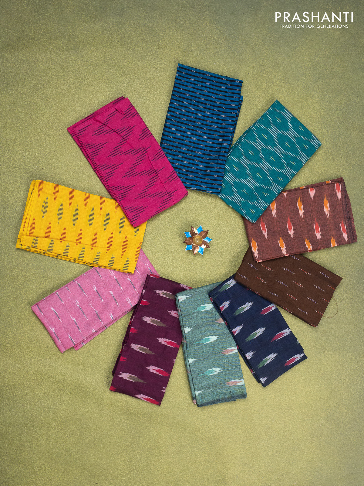 Ikat cotton blouse bits multi colour and multi design Pack of 10