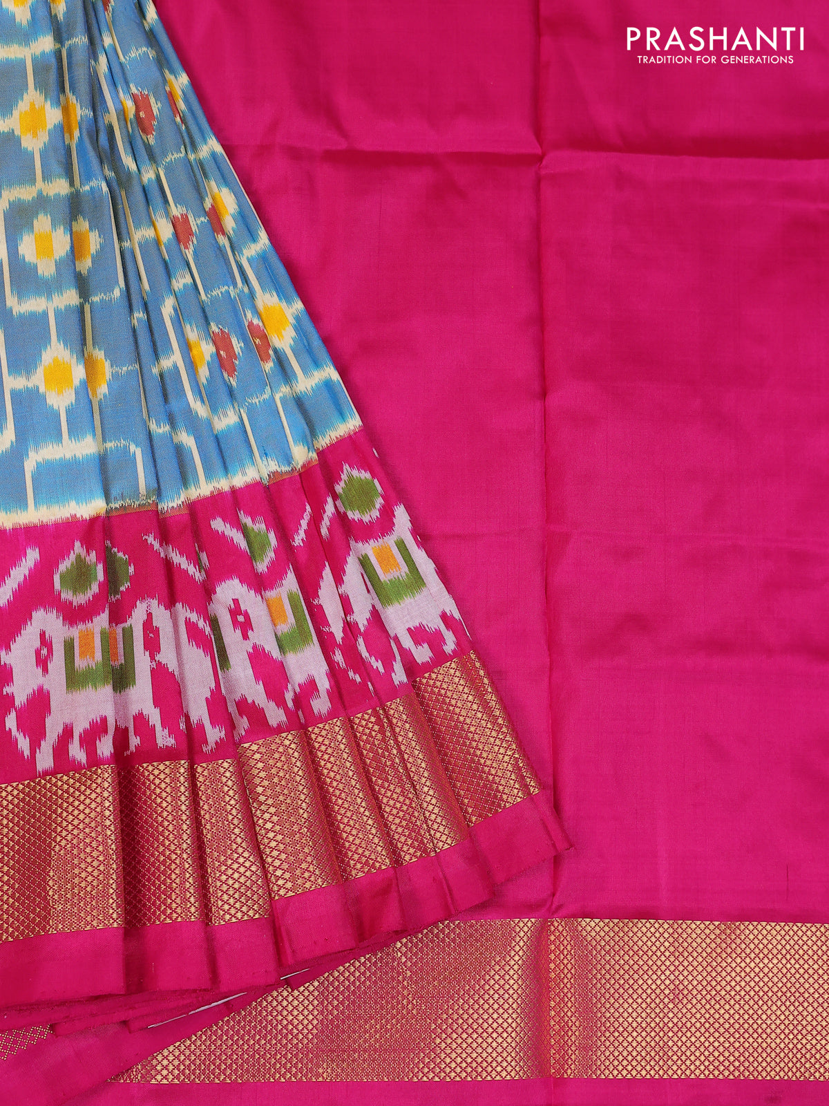 Ikat silk kids lehenga teal blue and pink with allover ikat weaves and long ikat woven zari border