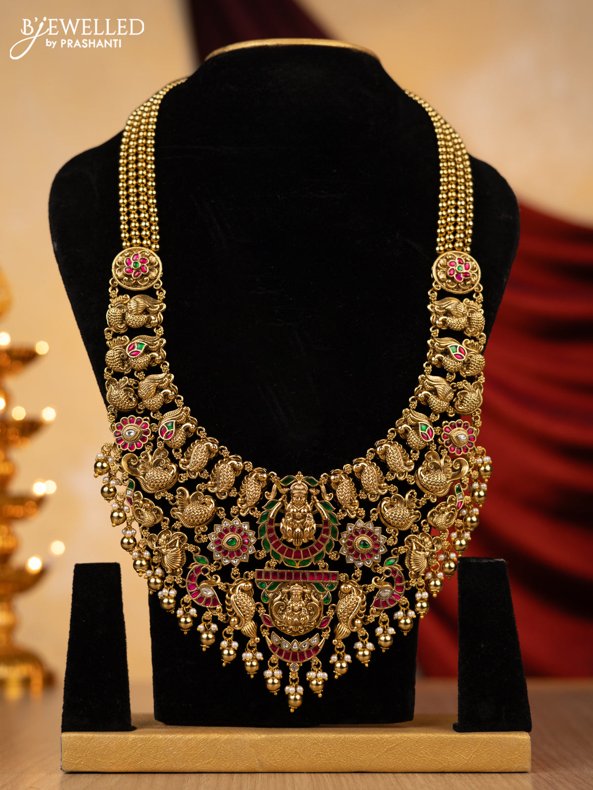 Jadau haaram lakshmi design with jadau kundan stones with natural beads hanging without earing