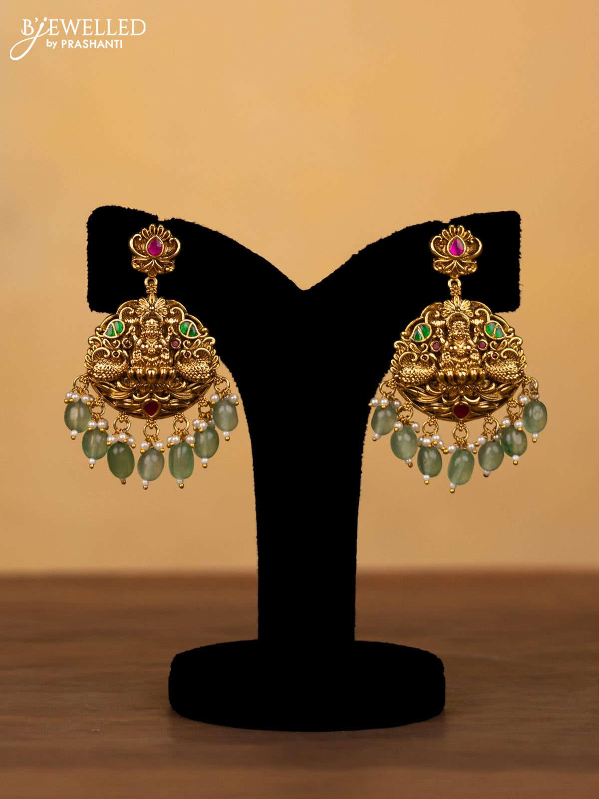Jadau haram lakshmi design with jadau kundan stones and green beads & pearl hangings