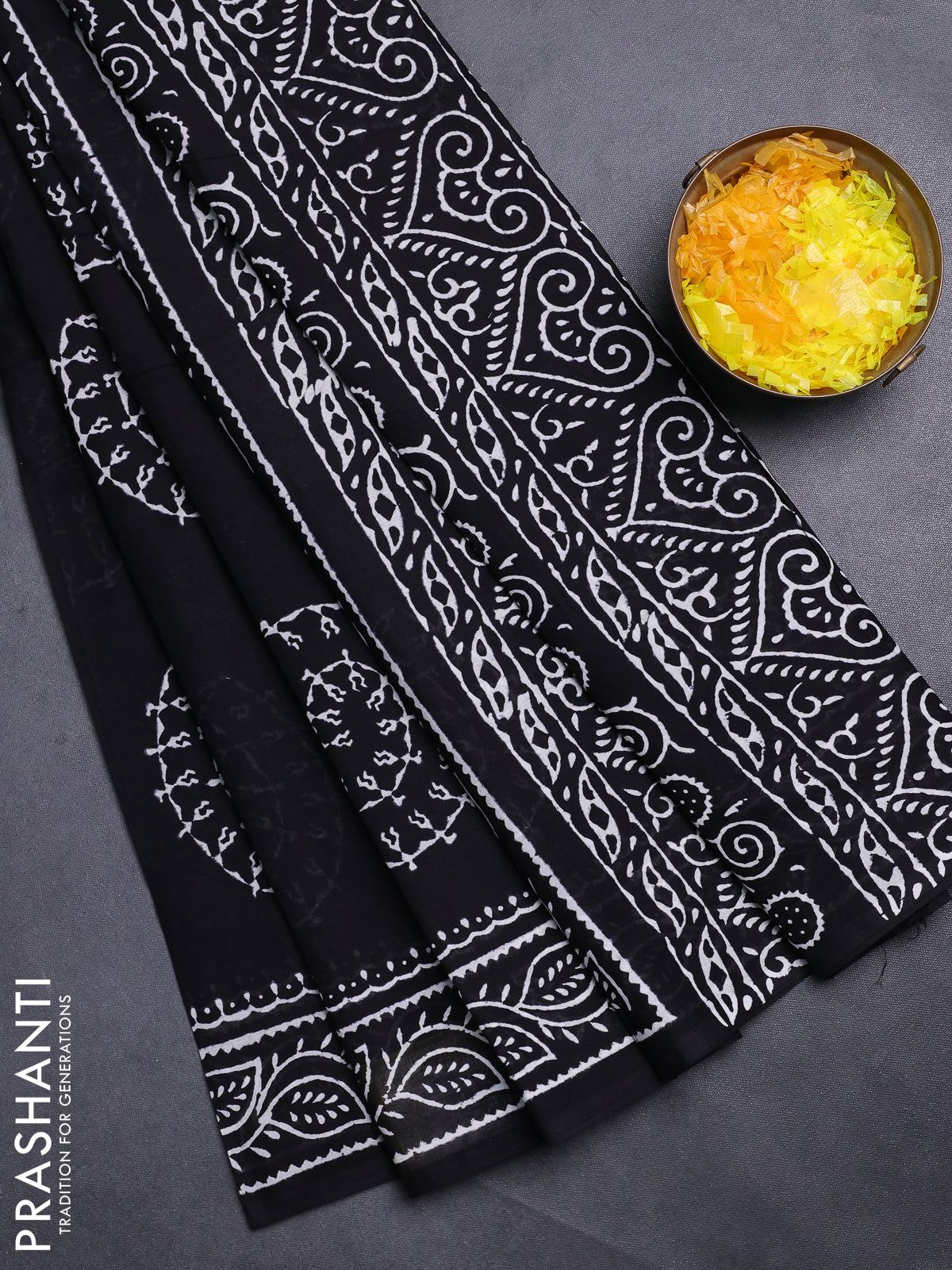 Jaipur cotton saree black and white with warli butta prints and printed border