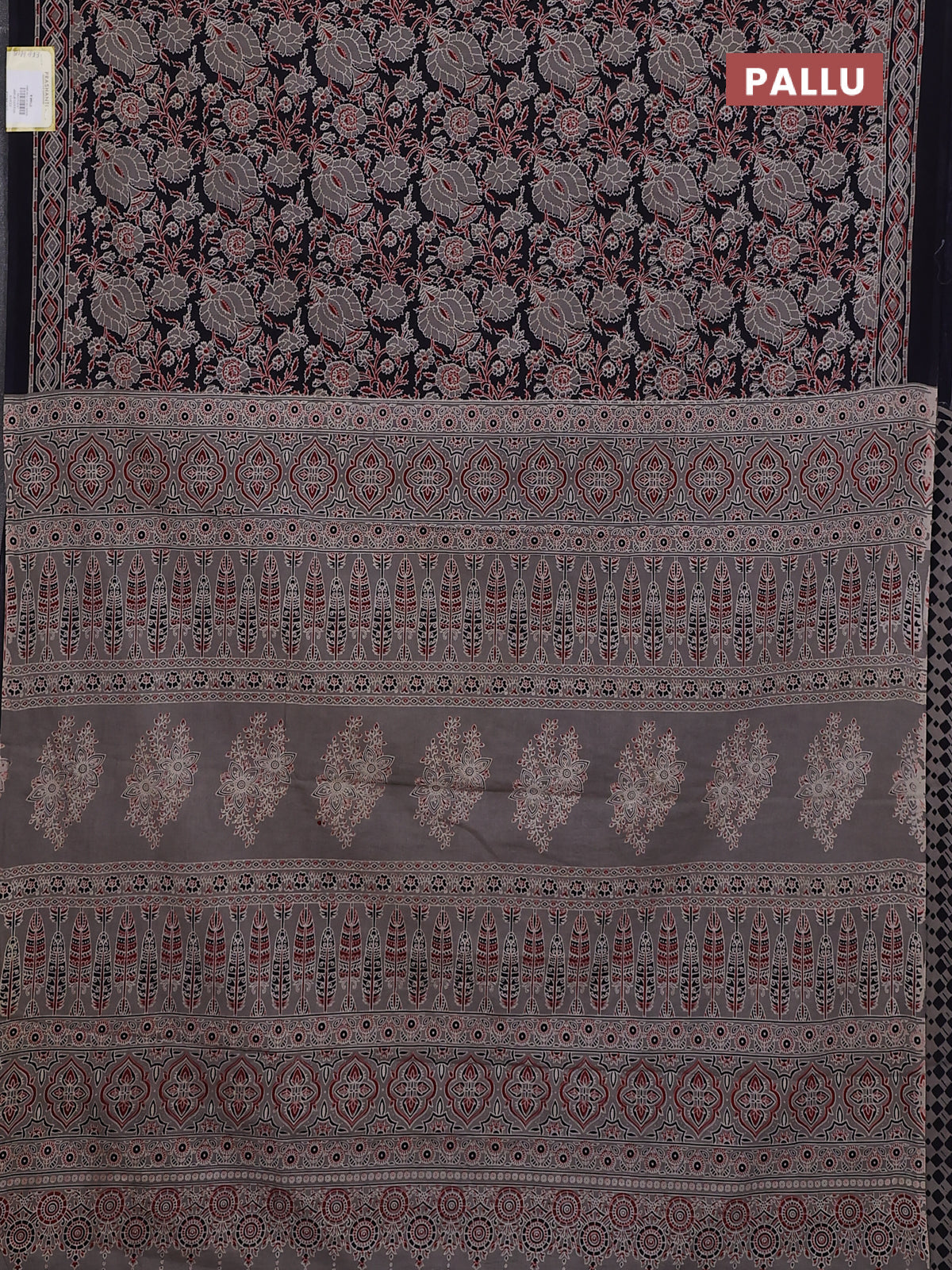Jaipur cotton saree black with allover kalamkari prints and printed border
