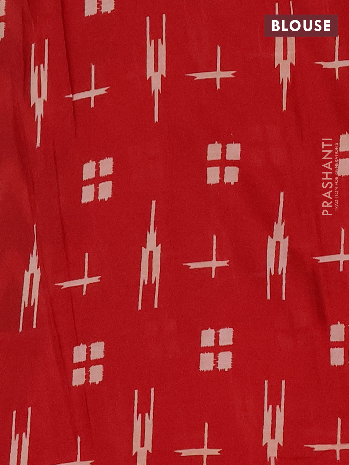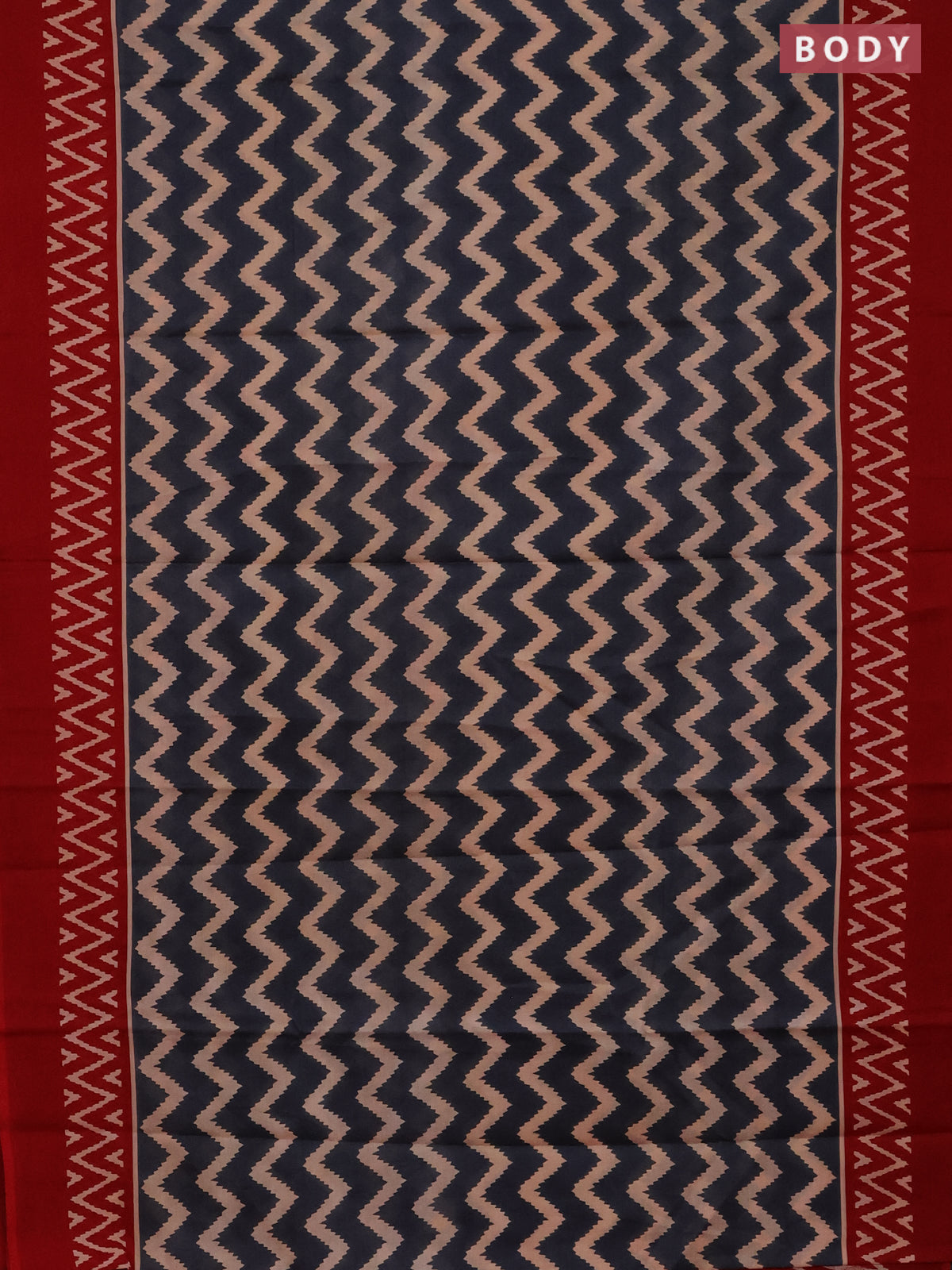 Jaipur cotton saree grey and red with allover zig zag prints and printed border