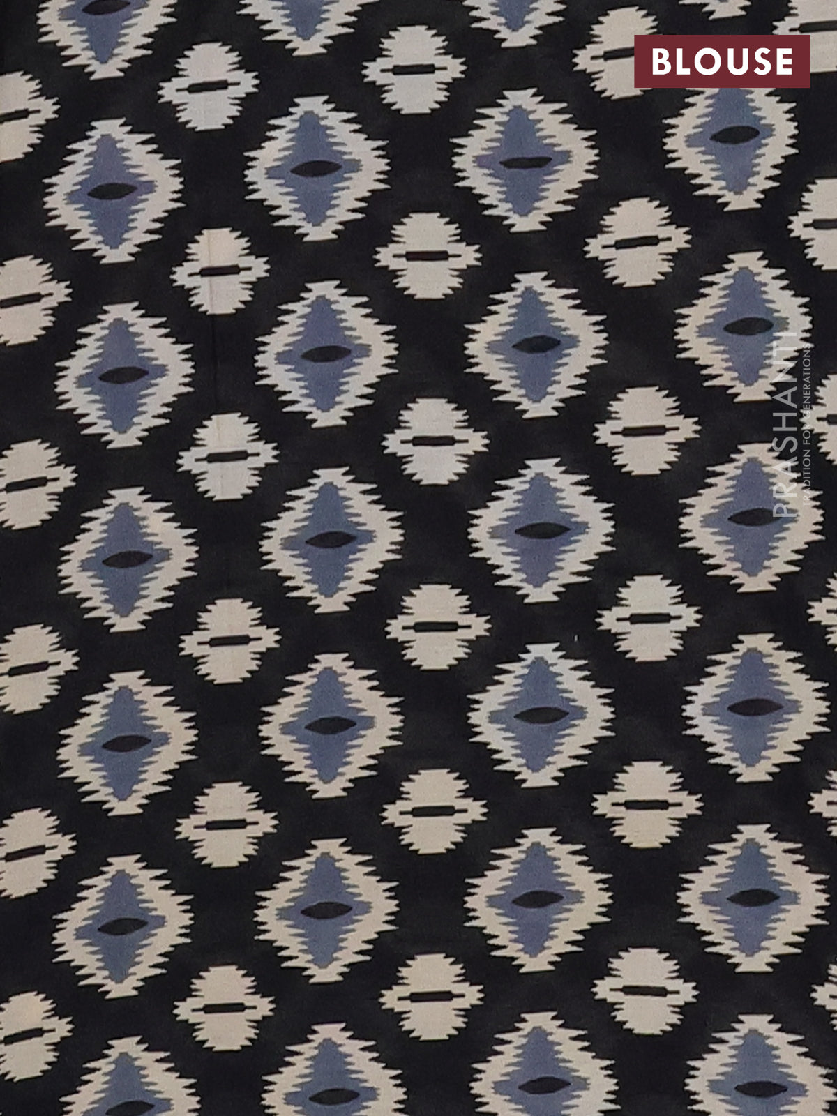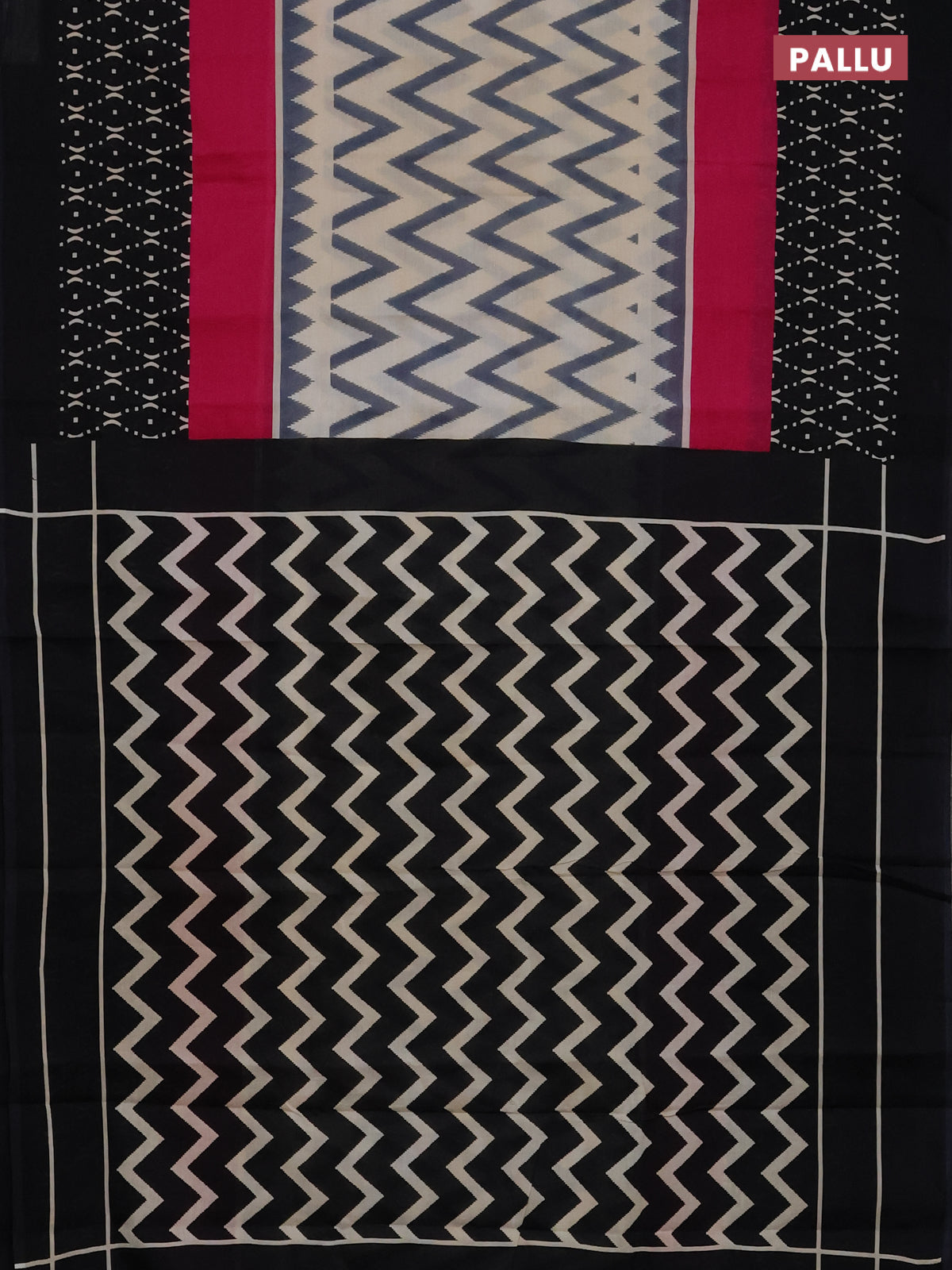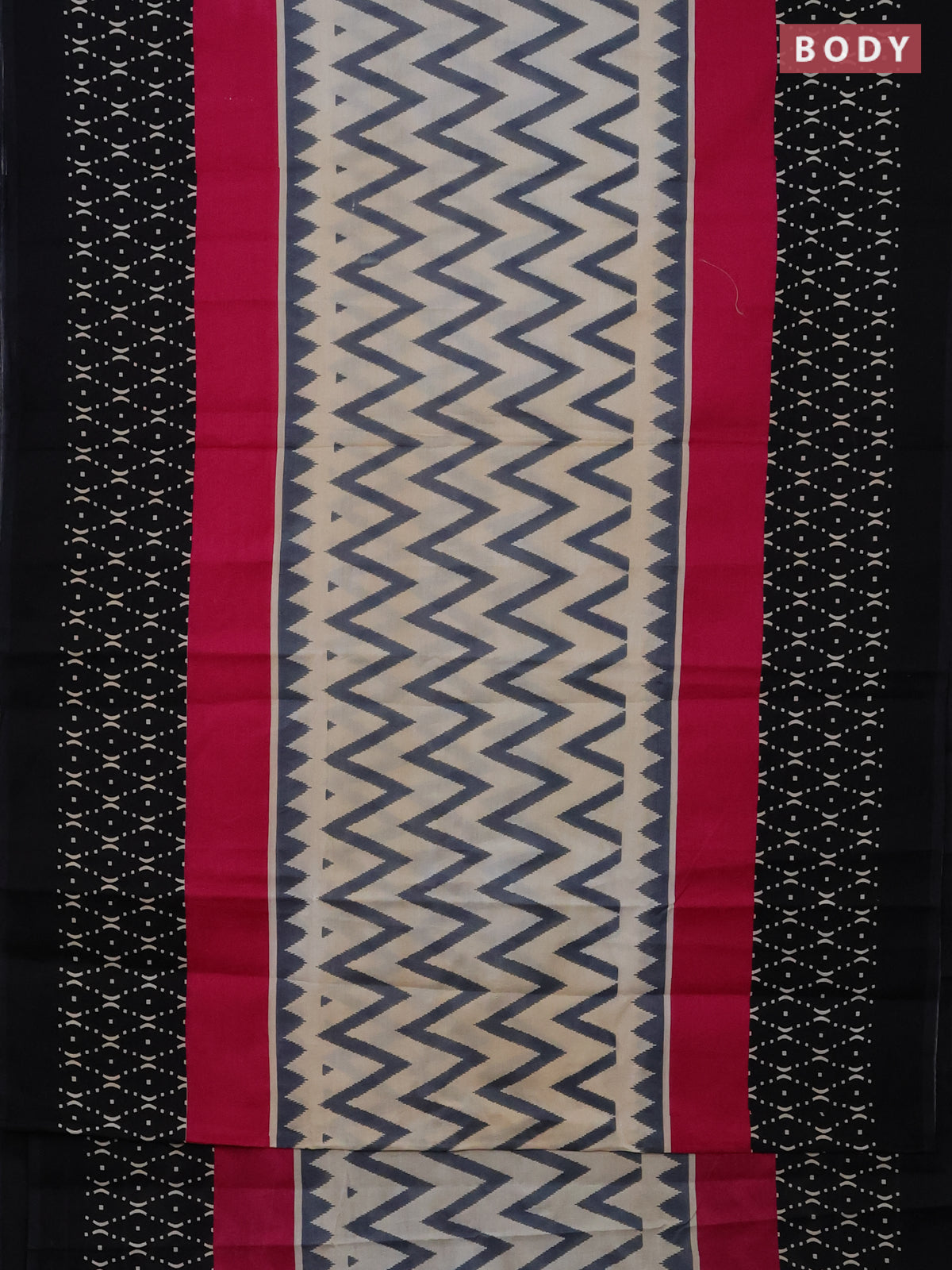 Jaipur cotton saree grey beige and black with allover zig zag prints and printed border