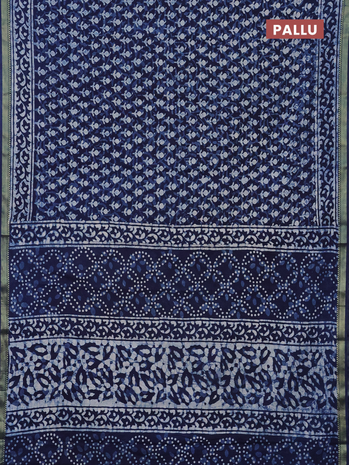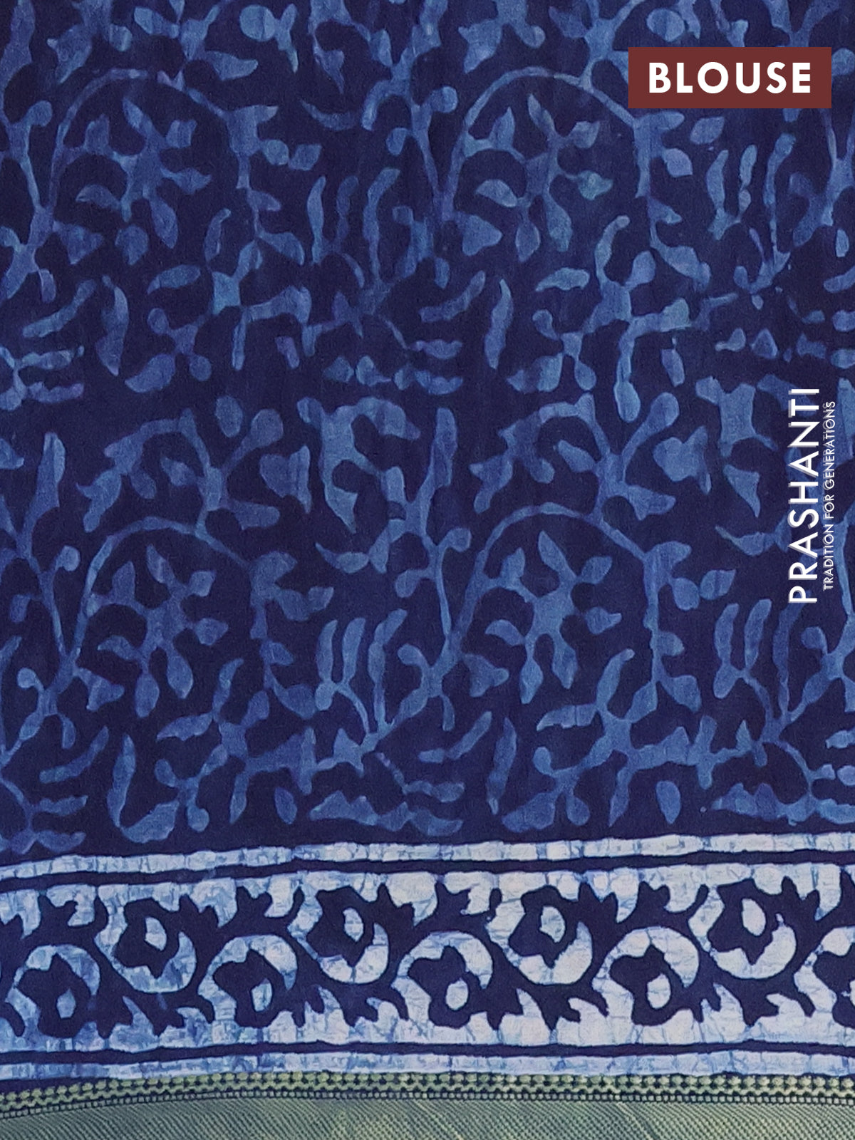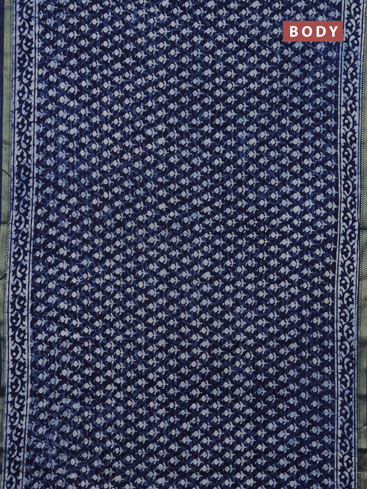 Jaipur cotton saree indigo blue with allover prints and printed border