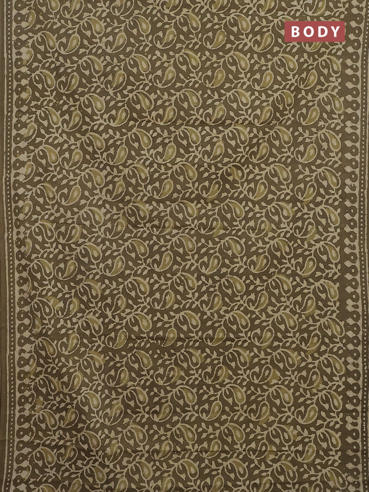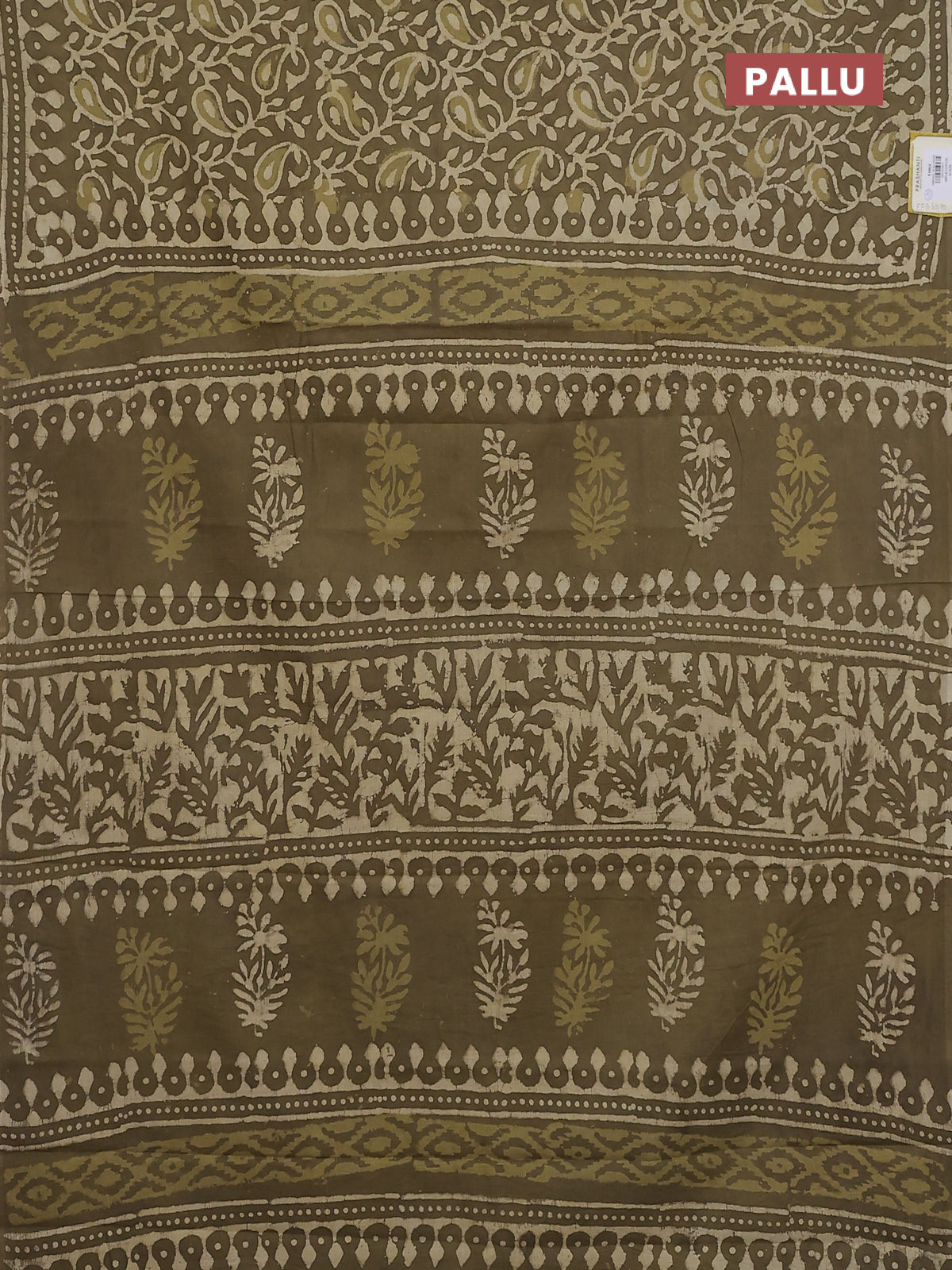 Jaipur cotton saree mahendi green with alovver dabu prints and printed border