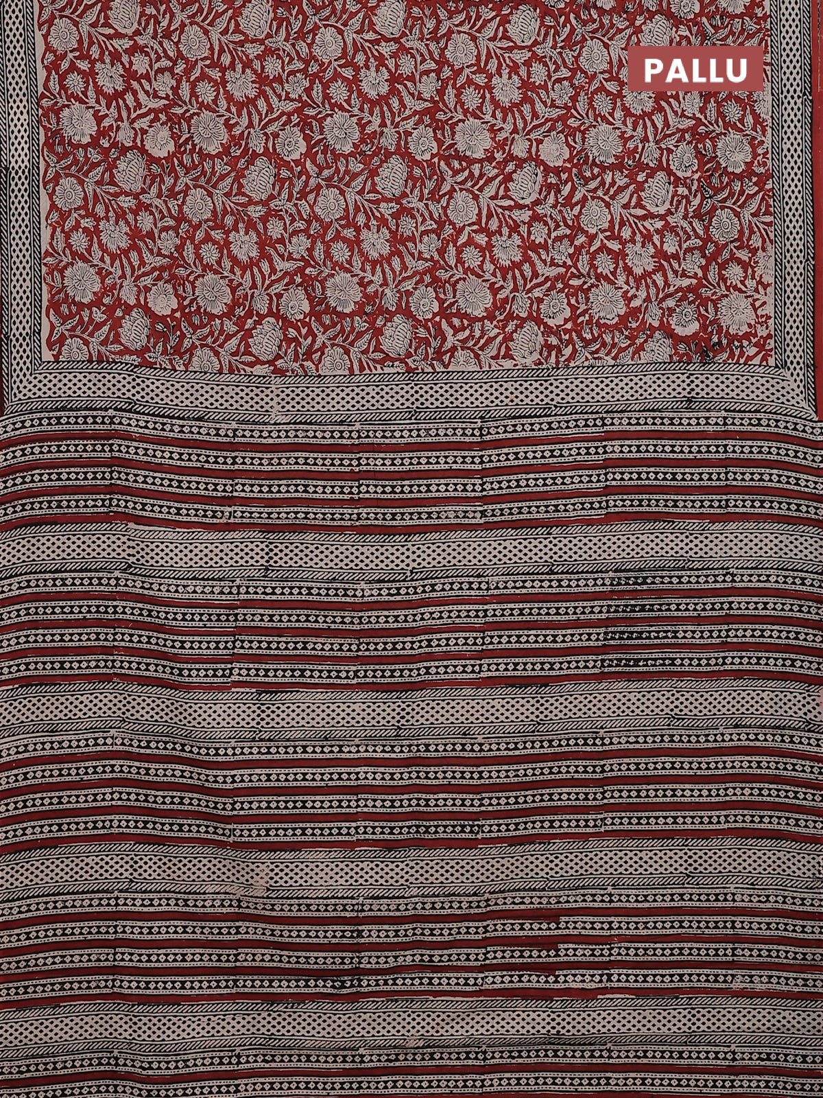 Jaipur cotton saree marron and black with allover kalamkari prints and printed border
